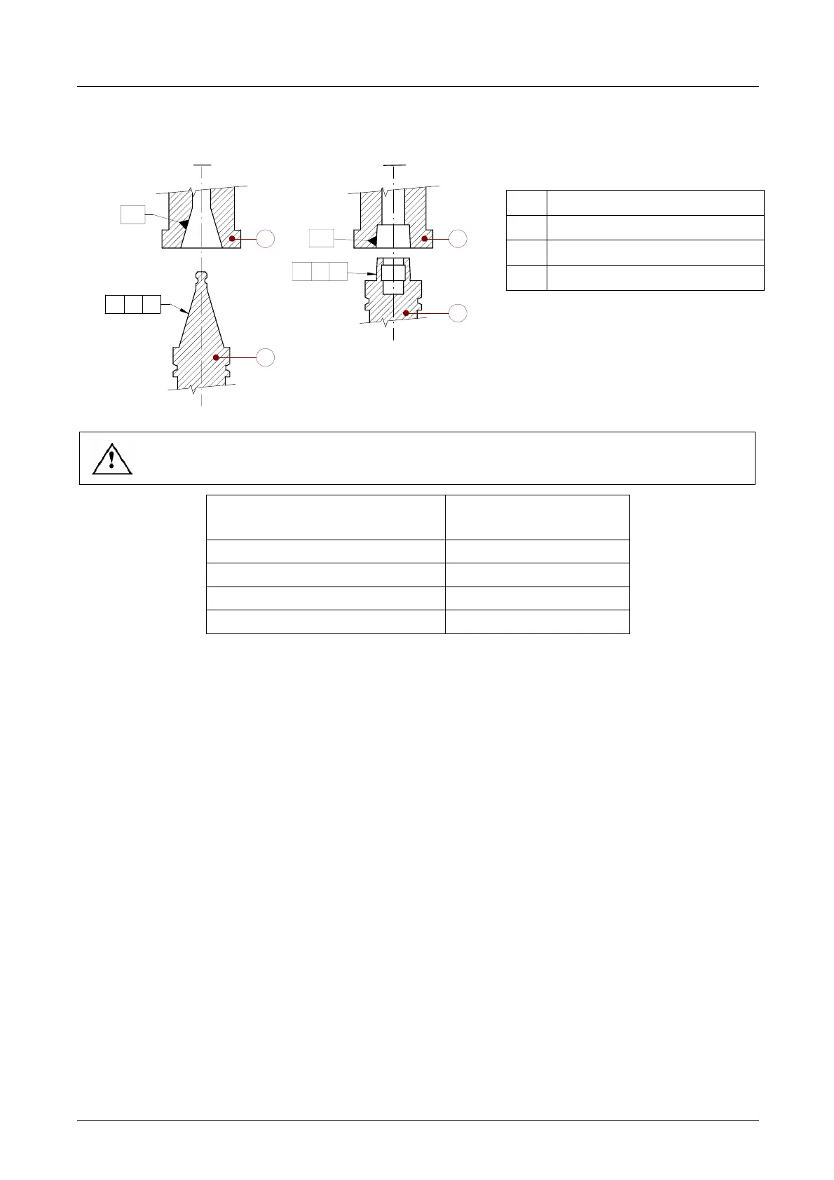 spindle shaft and the tool-holder cone as shown in the table below.