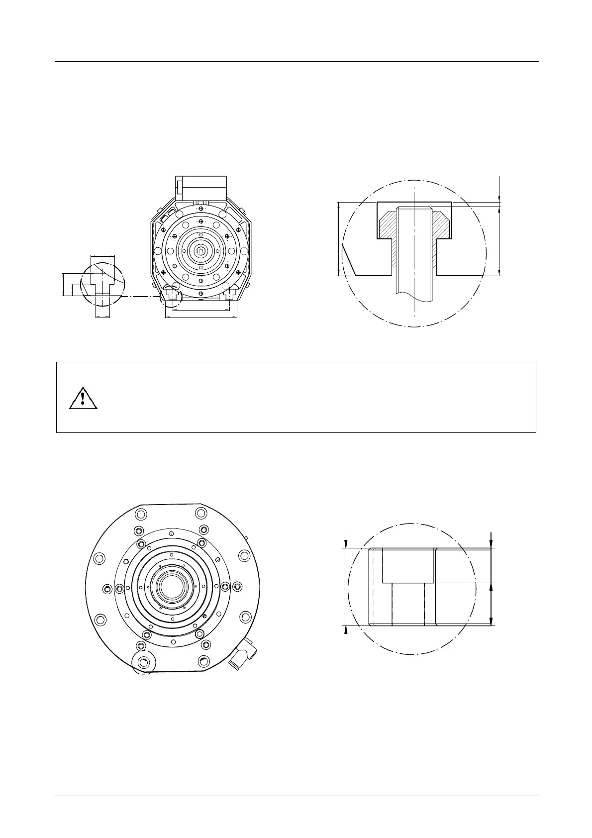 To fix the electrospindles with a round framework, use the eight ø 8.5 bores on the fixing flange