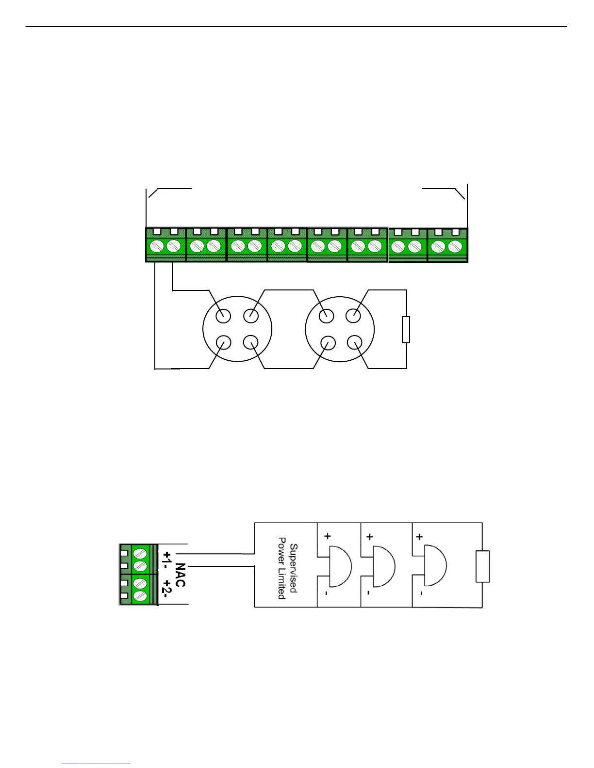 Figure 2.5 shows output circuit 1 wired as a class B NAC output. Observe the