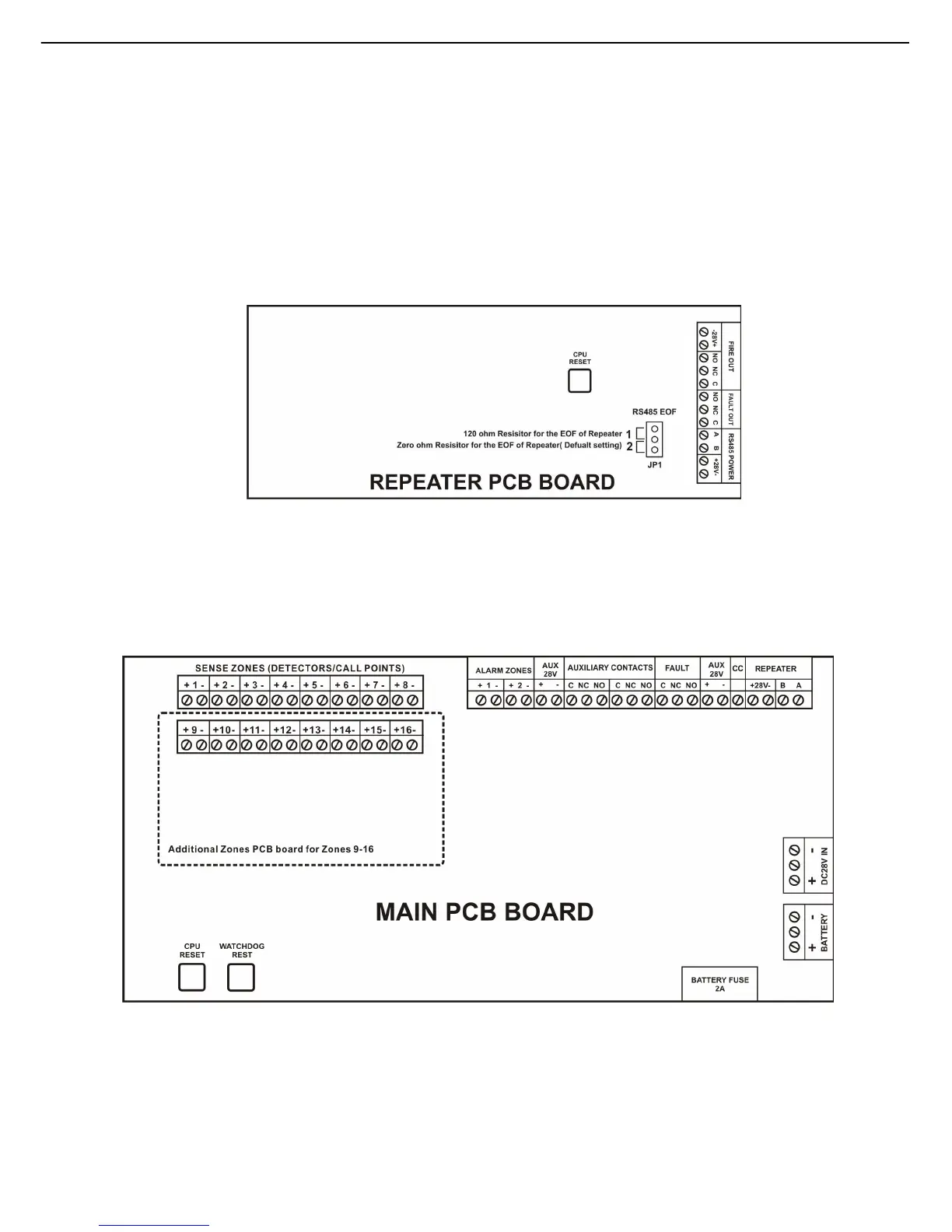 There is one jump JP1 on the repeater PCB board. For each one fire alarm control