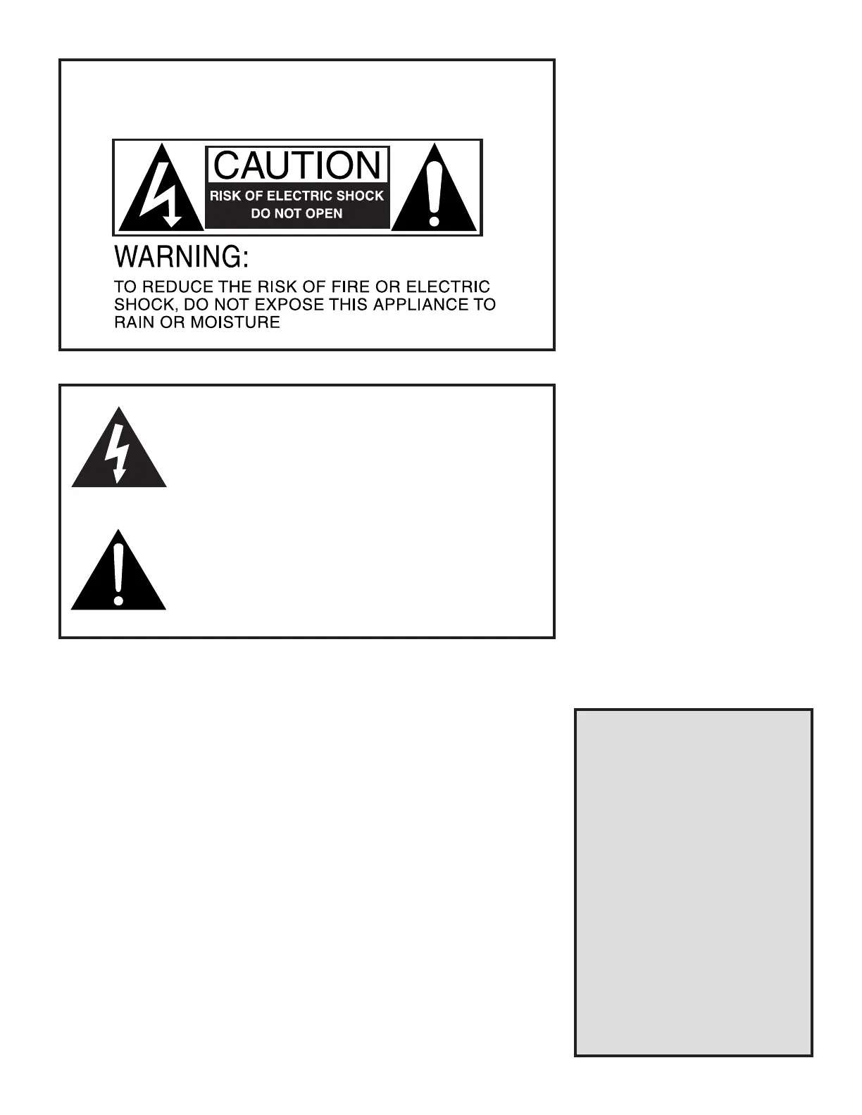 or electric shock, this apparatus should