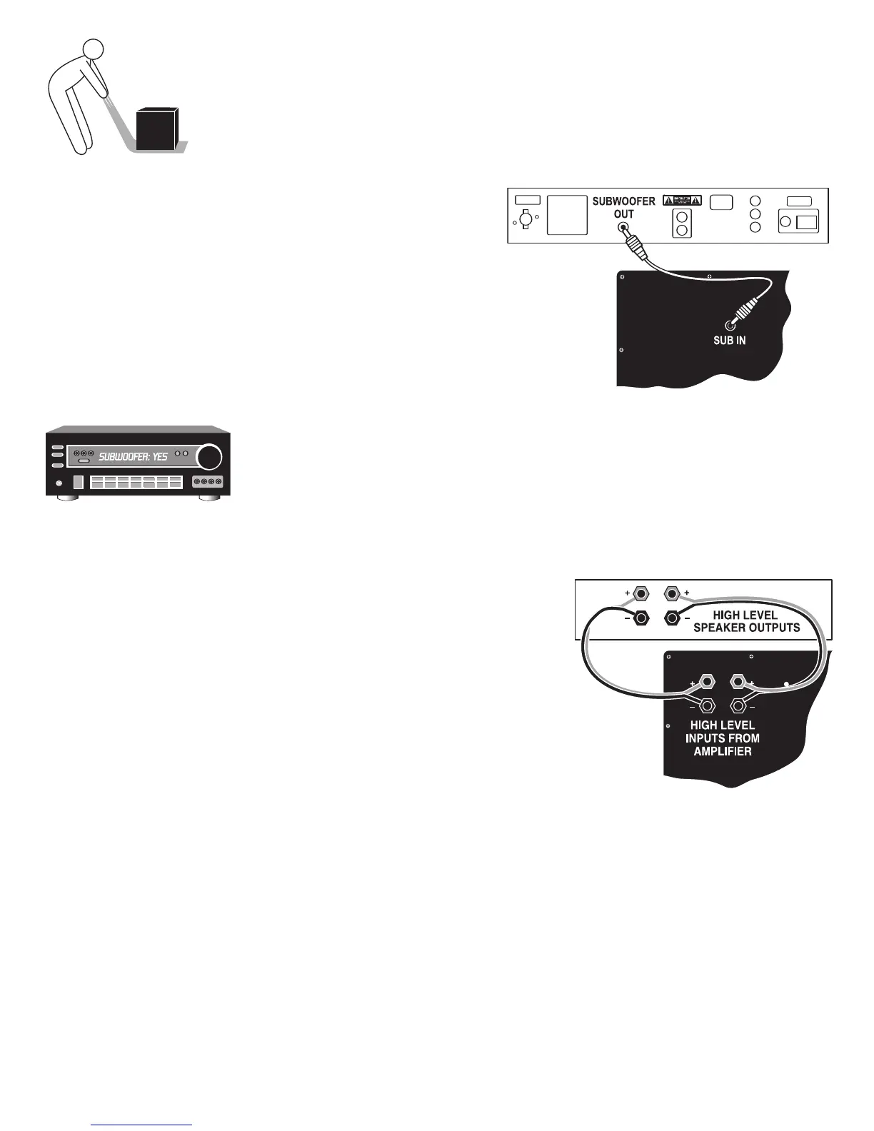 puts on the amplifier to the subwoofer’s red (+) inputs, and from the black (-) outputs on the amplifier to the subwoofer’s black (-) inputs.