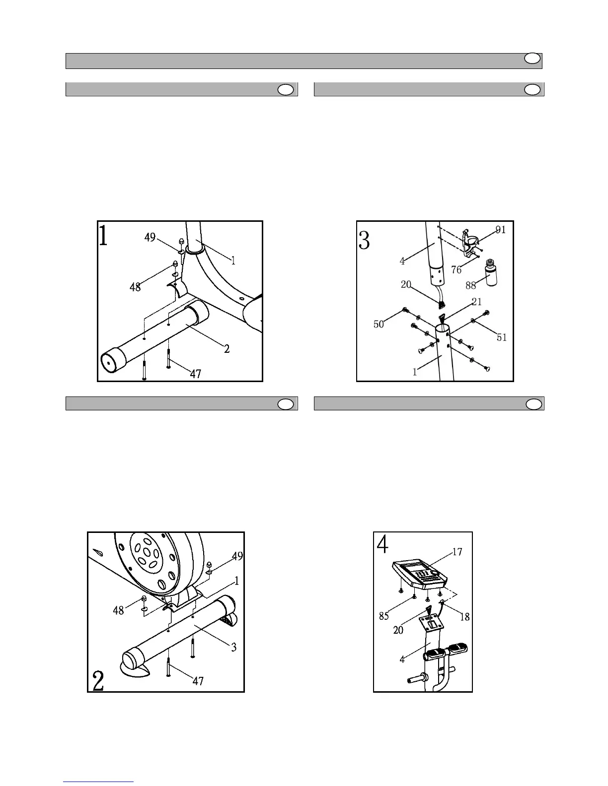 1. Fasten rear stabilizer (3) with 2 carriage bolts (47)