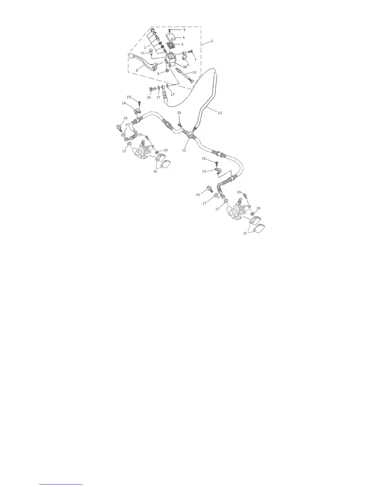 13、 front disk brake pipe 14、rear brace of front hydraulic pipe 15、inner