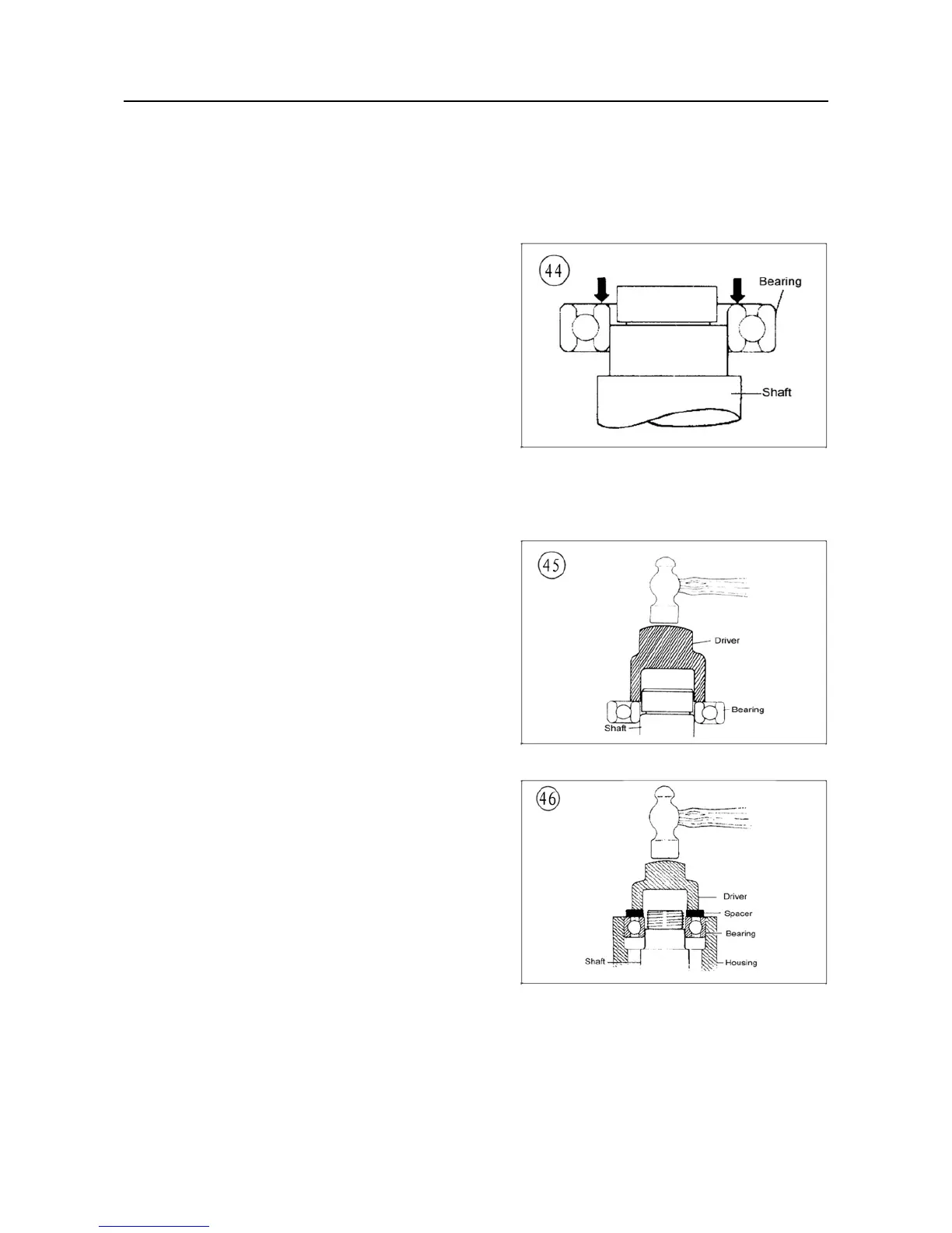 piece of pipe or a driver with a diameter that matches the bearing inner race. Figure 45 Shows