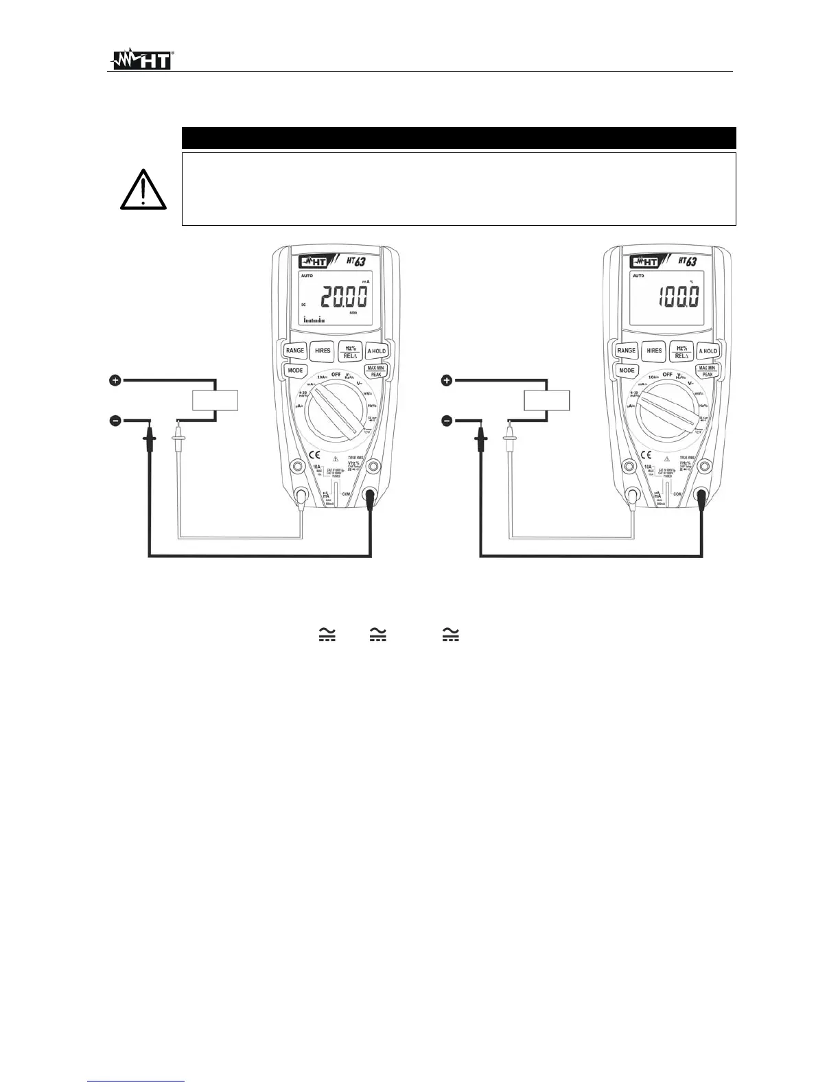9. L'affichage du symbole "-" sur l'écran de l'instrument indique que le courant a une