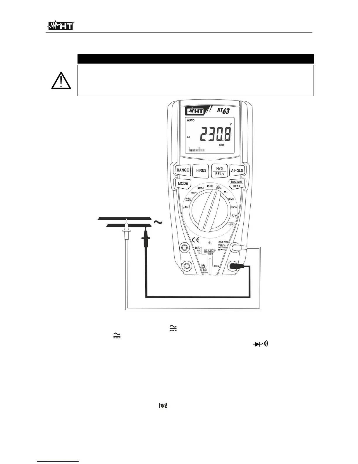 attiva in queste funzioni. Premere il tasto MODE per tornare alla misura di tensione e
