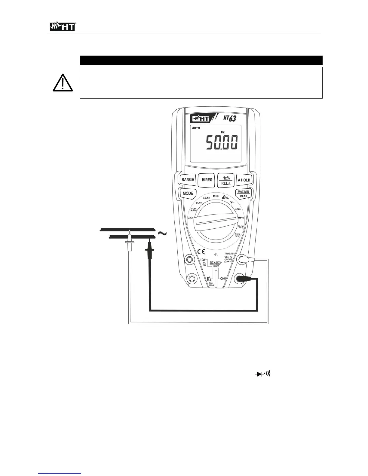2. Premere il tasto Hz% per selezionare le misure “Hz” o “%” al fine di visualizzare i valori