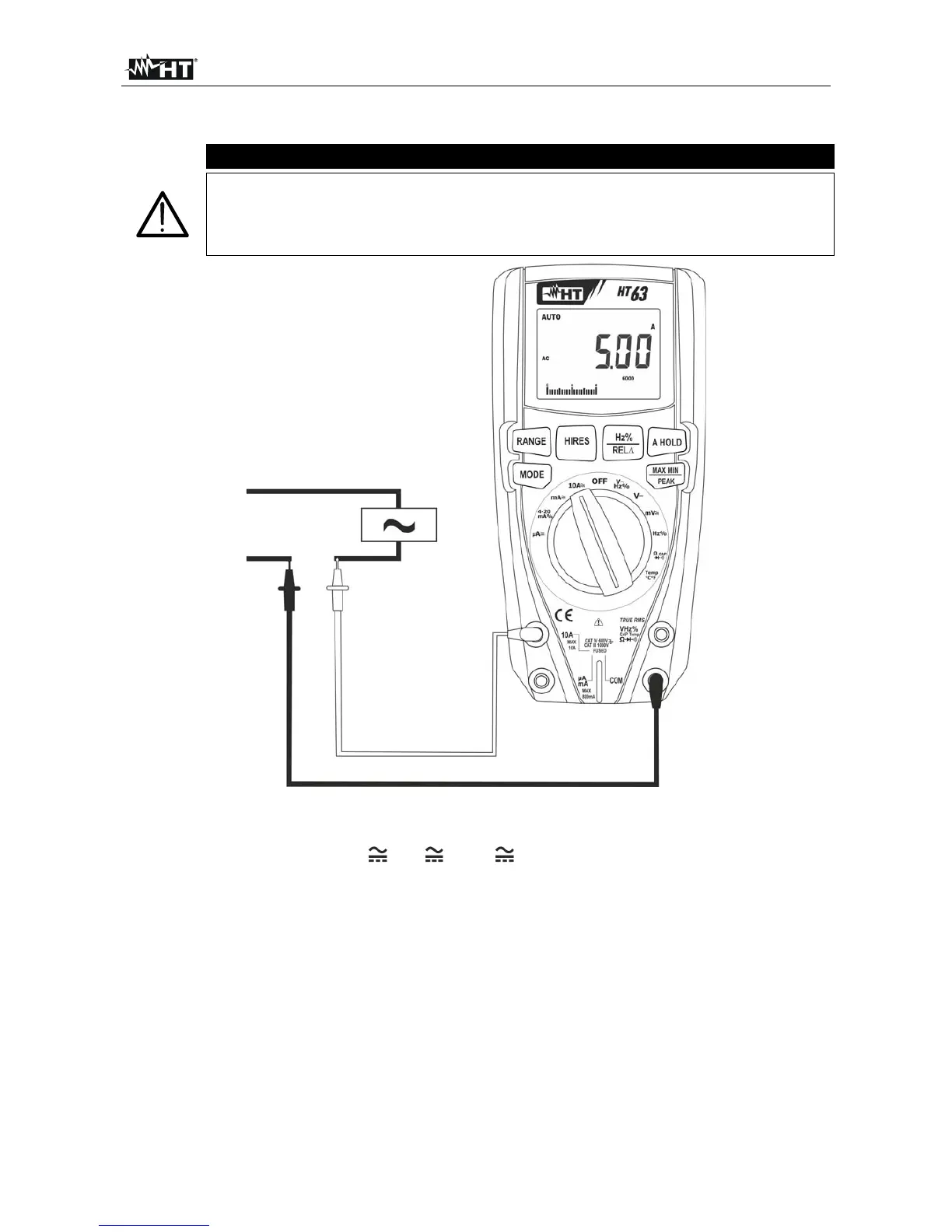 Fig. 10: Uso dello strumento per misura di Corrente AC