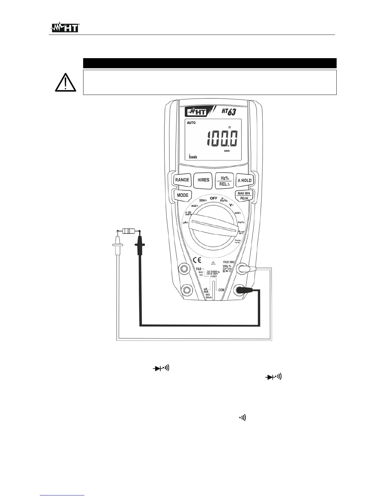 Fig. 5: Uso del instrumento para medida de Resistencia y Prueba de Continuidad