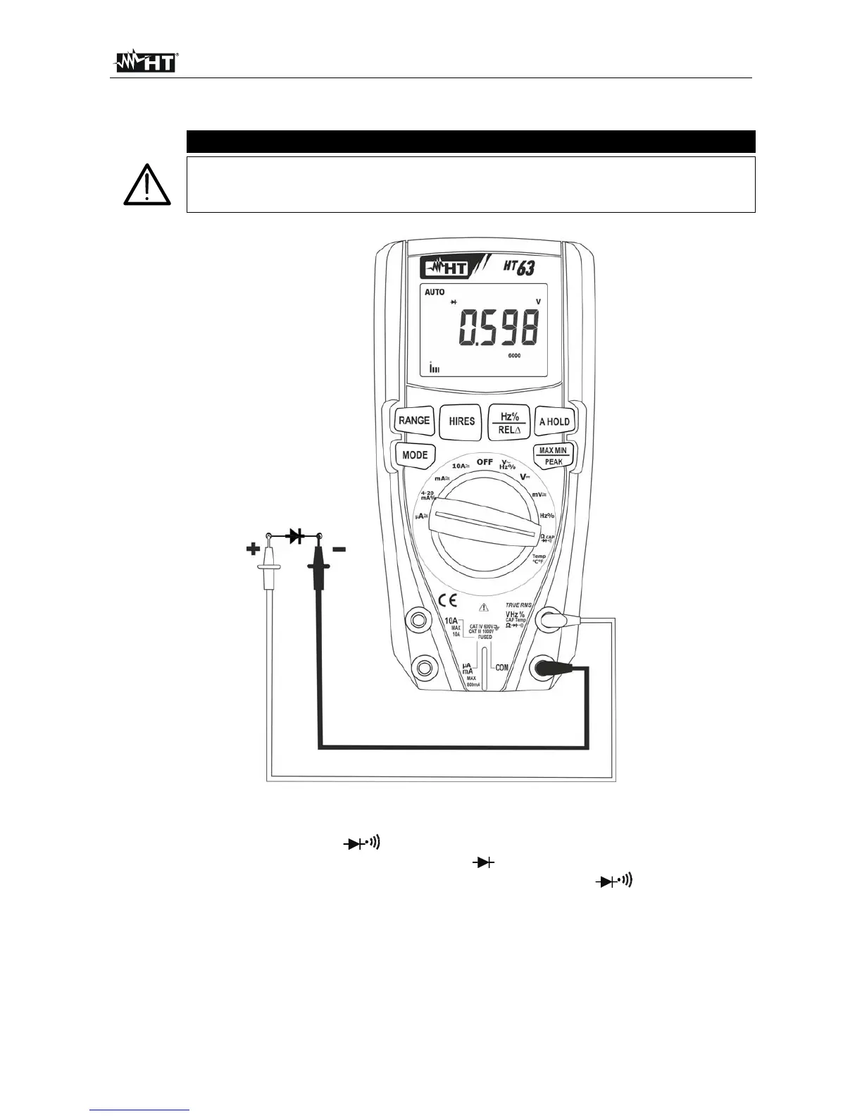Fig. 6: Uso del instrumento para la prueba de Diodos