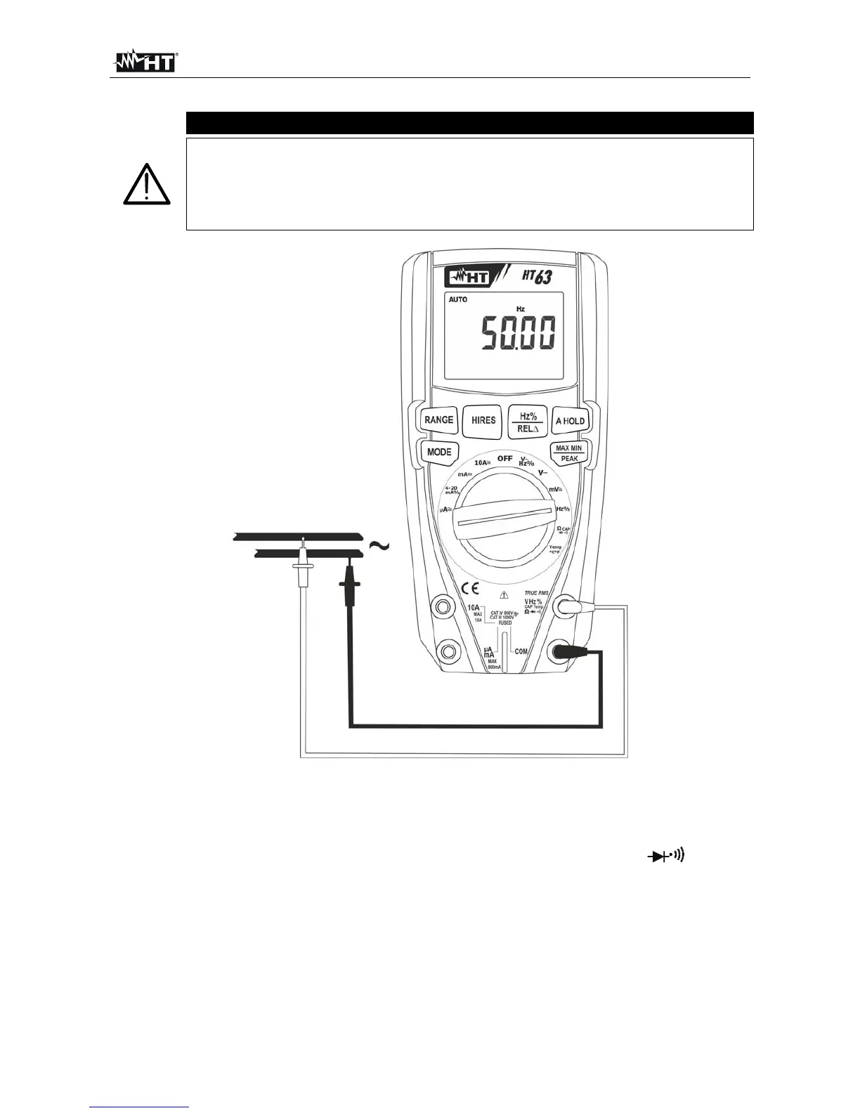 2. Drücken Sie die Hz% Taste zur Auswahl der Messungen “Hz” oder “%”, um die Werte