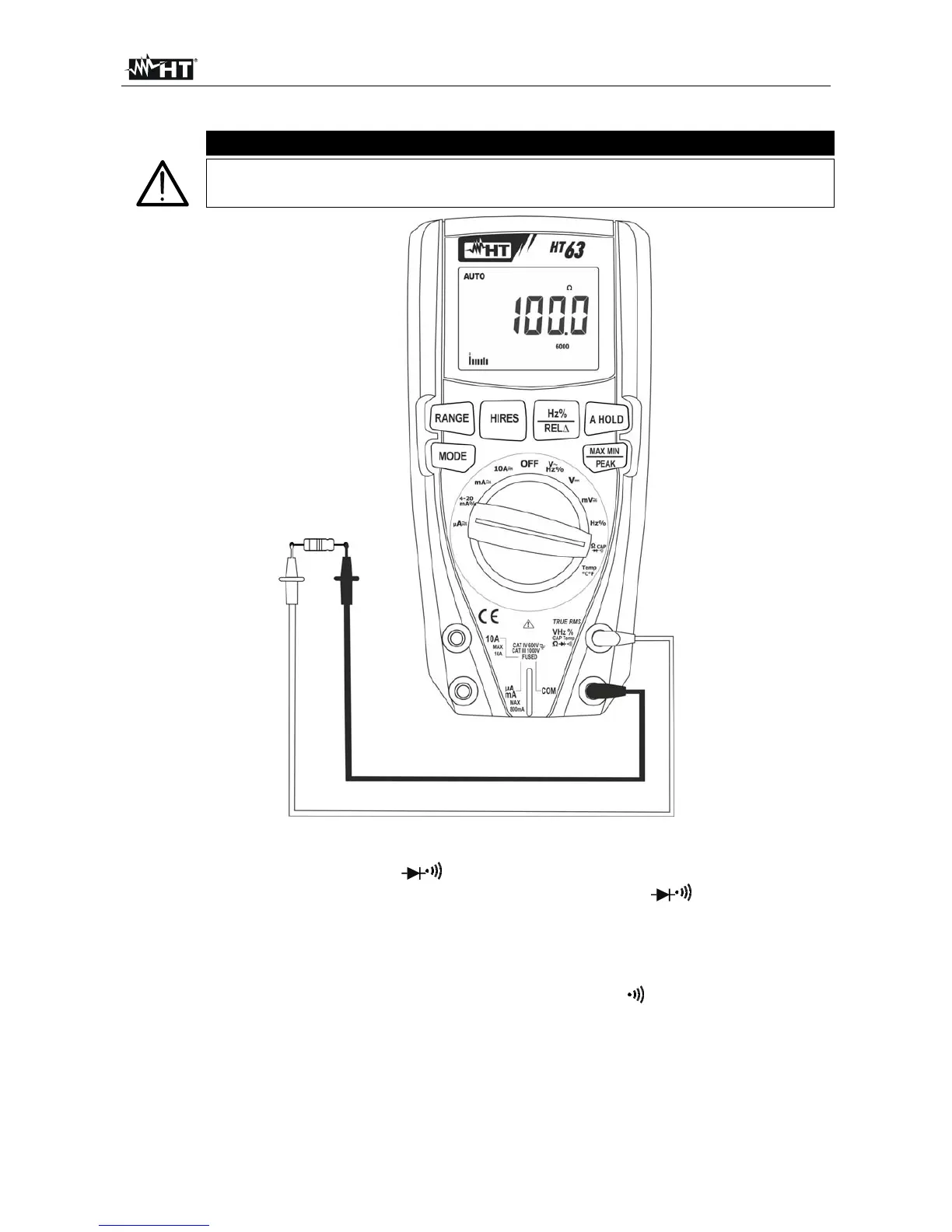 5. Drücken Sie die MODE Taste zur Auswahl der Messung “ ” (Durchgangstest) und