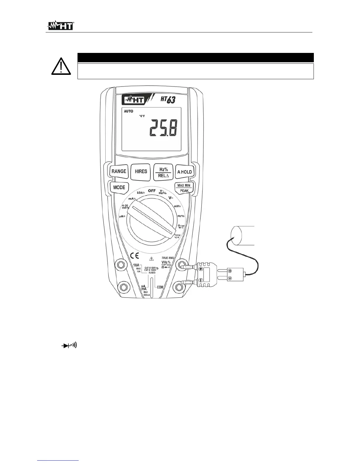 negative Polarität auf dem Gerät. Der Temperaturwert erscheint auf dem Display. Der