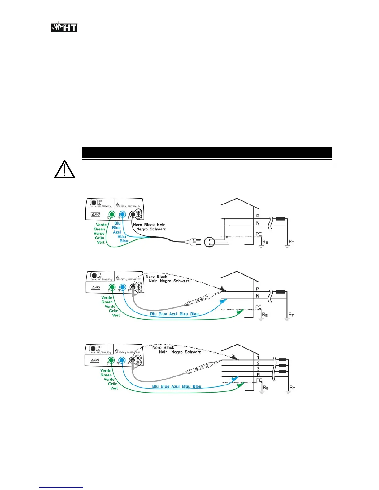 Fig. 17: Instrument connection for 400V + N + PE three-phase P-N line impedance and