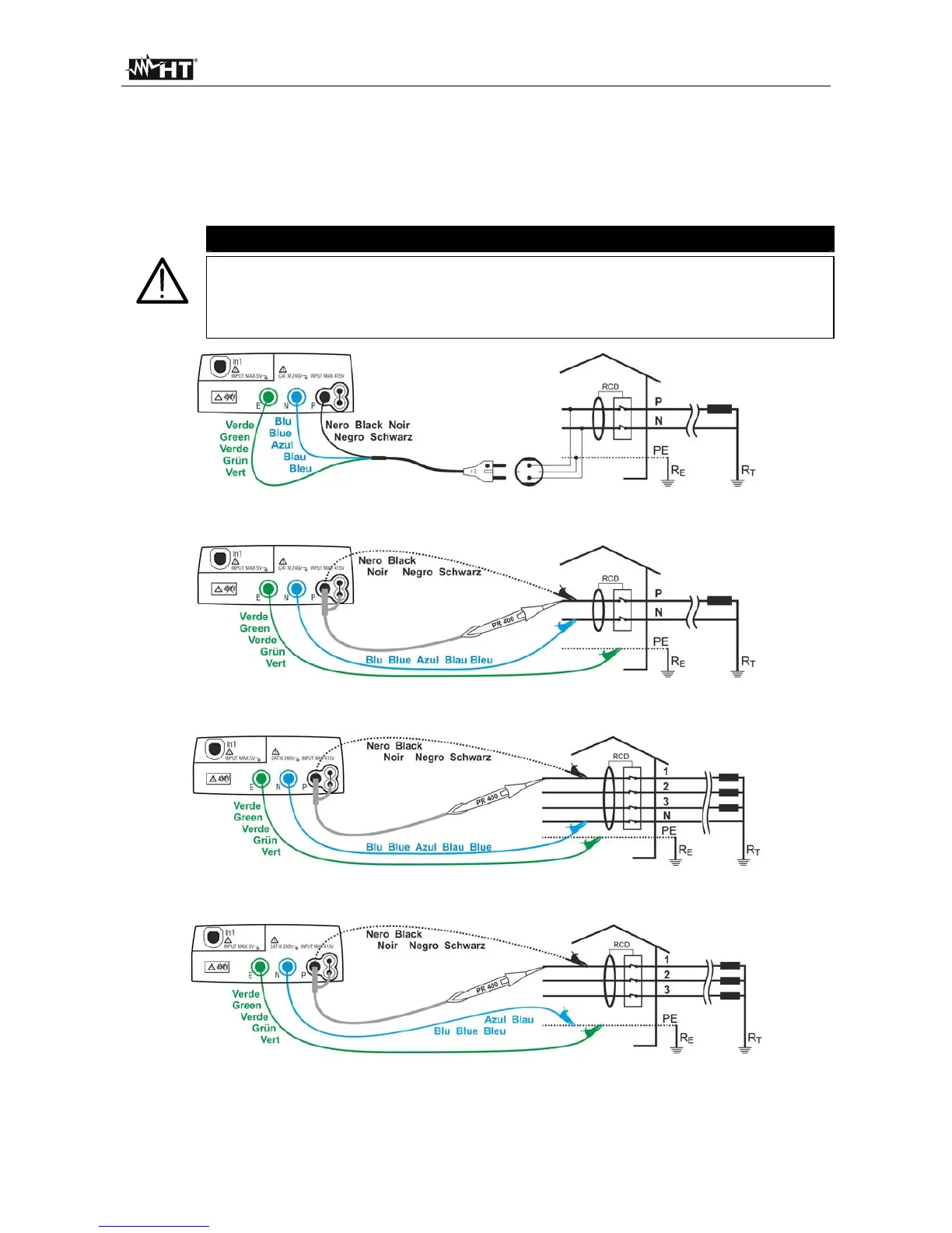 Fig. 22: Instrument connection for 400V + N + PE three-phase P-PE fault loop impedance