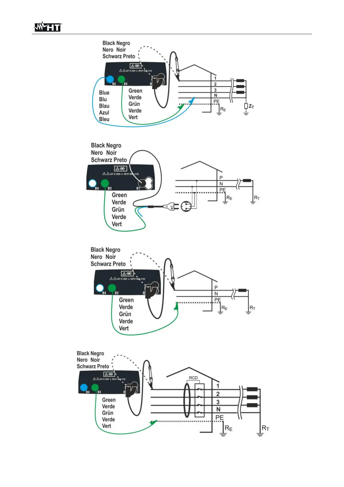 Fig. 30: P-PE 2-wire test for single-phase/two-phase systems with cables and remote probe