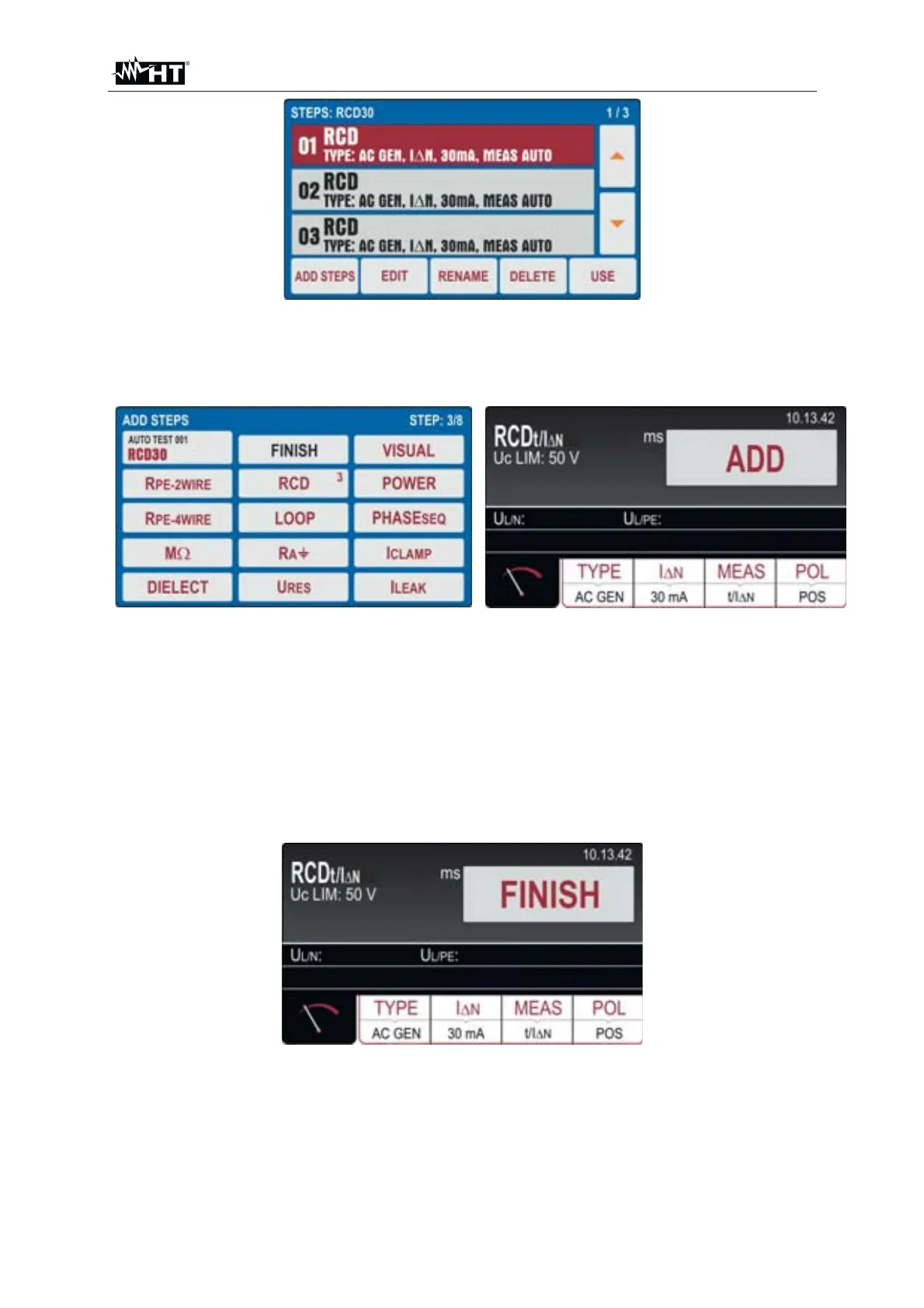 6. Touch the test to be include (ex: RCD) noting the presence of the number of tests