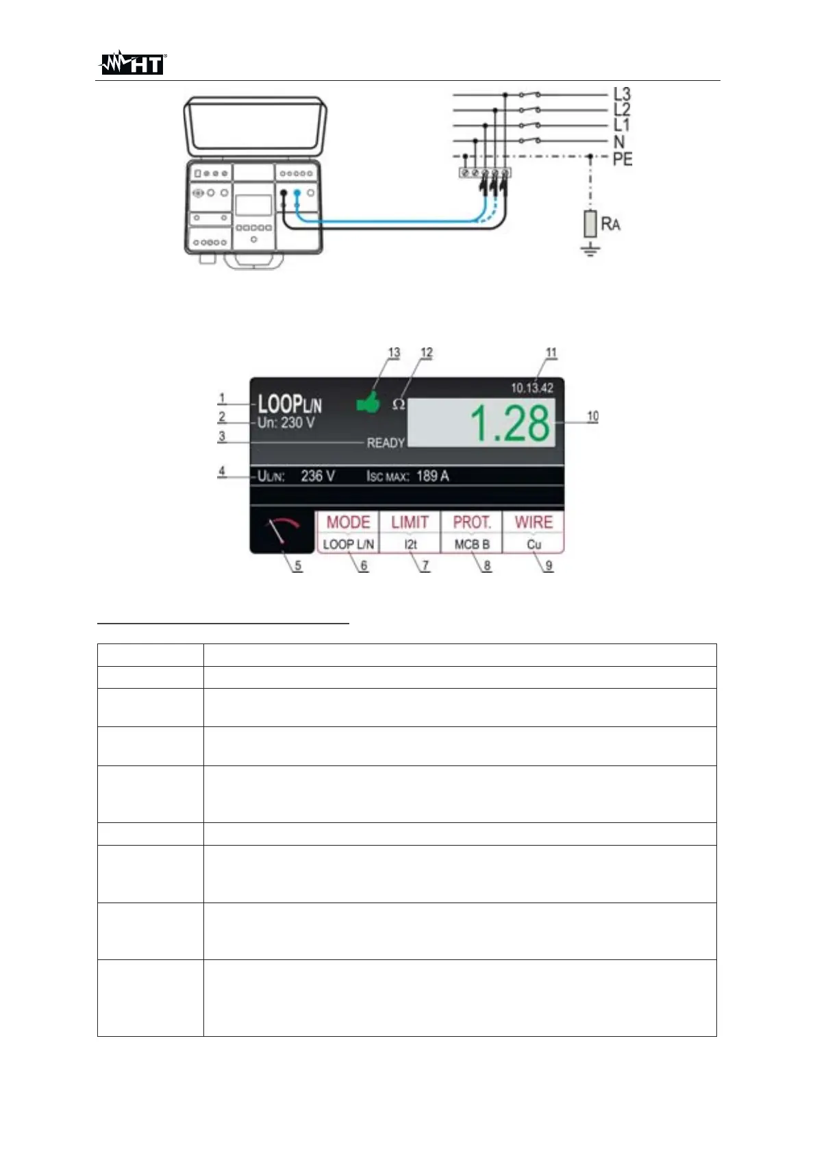 LOOP L/L, LOOP L/PE, IMP57 L/N, IMP57 L/L or IMP57 L/PE).