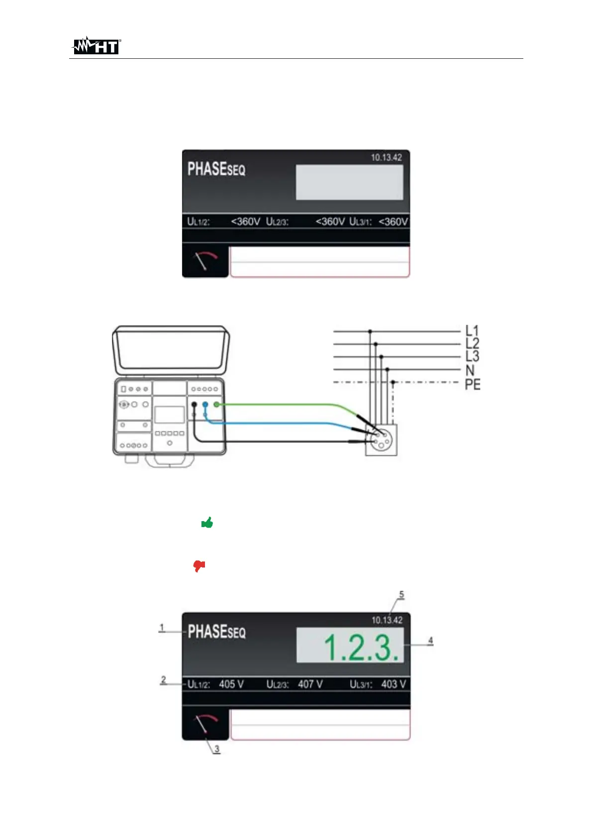 The instrument allows to perform the phase sequence sense test in a three-phase