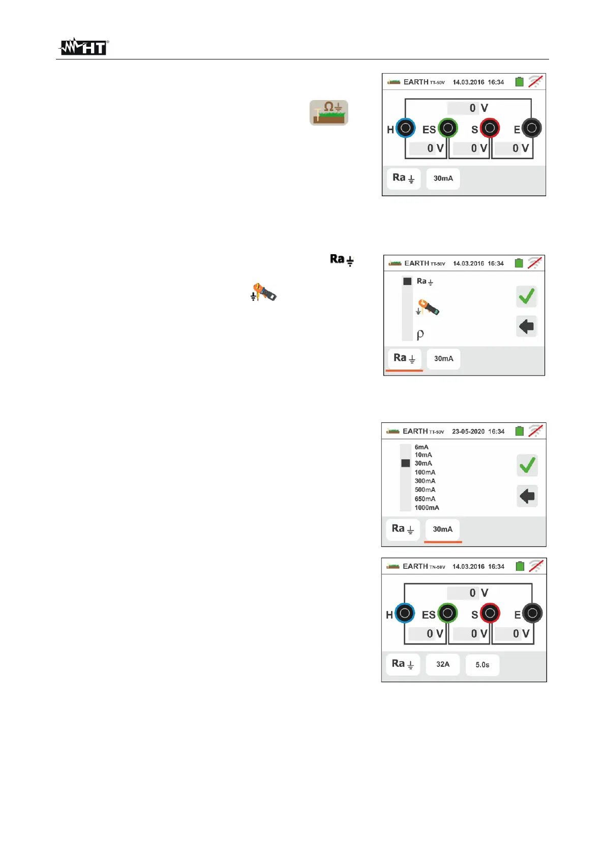 1. Select the options “TN, TT or “IT”, “25 or 50V”, “50Hz or