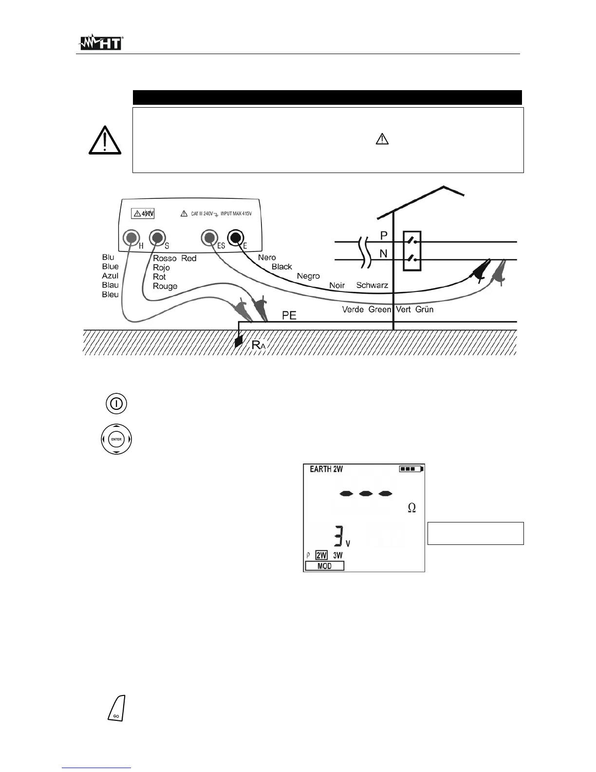 detected voltage as well as the warning symbol for wrong entering will be
