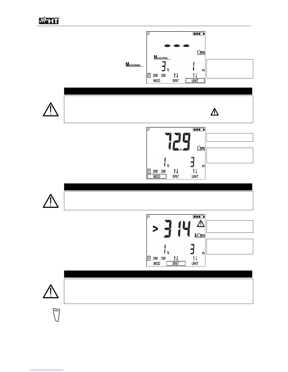 The measurements can be stored pressing the SAVE key twice (§ 5.1)