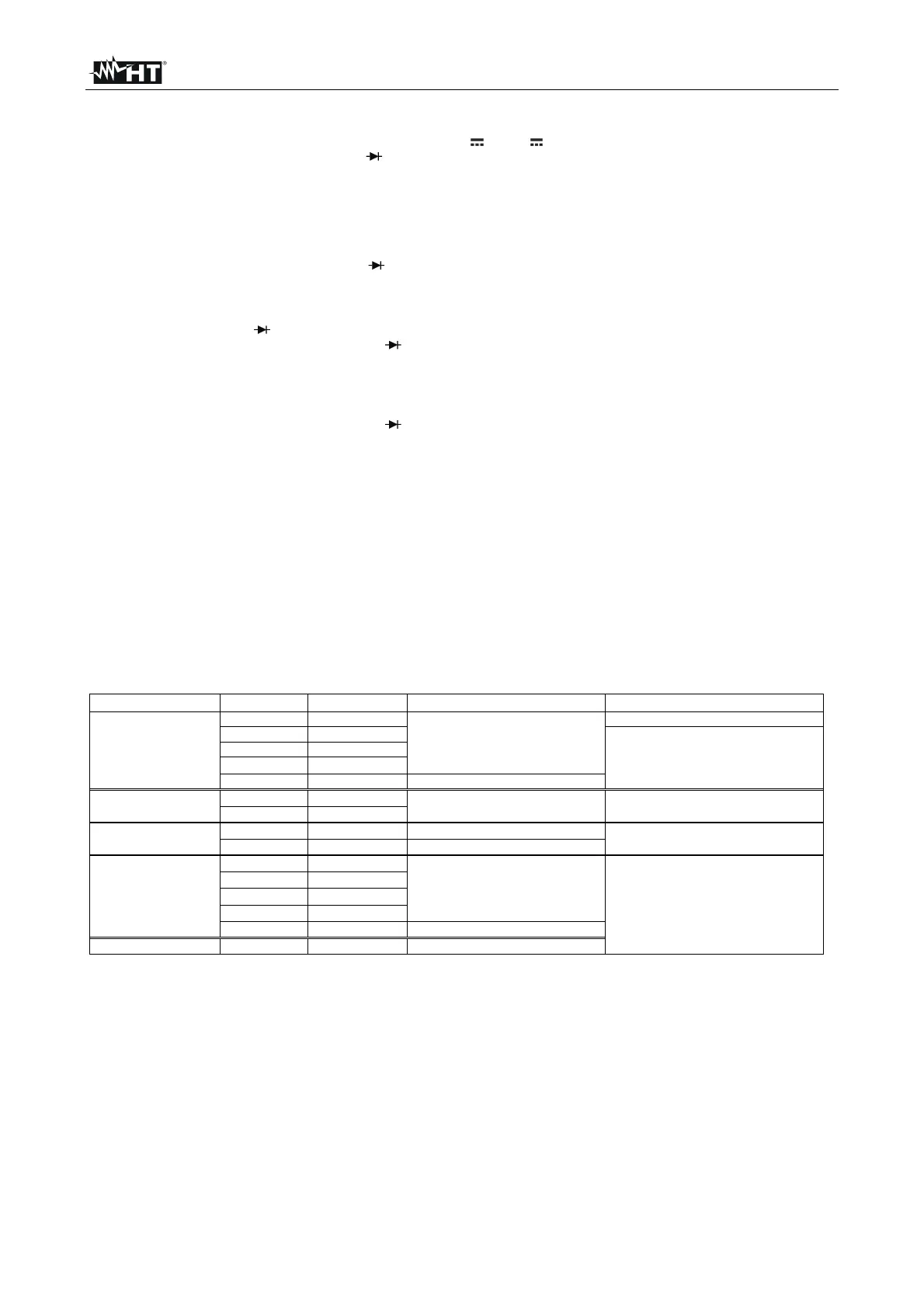 Prova diodi: Max corrente di prova 1mA, tensione a vuoto 2.8V DC (tipica)
