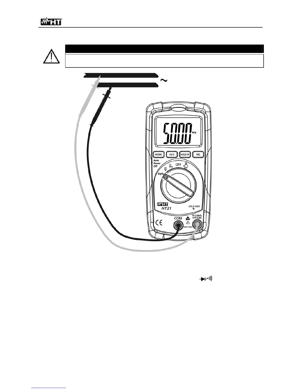 3. Connect the test leads to the circuit under test. The frequency value, with kHz or MHz