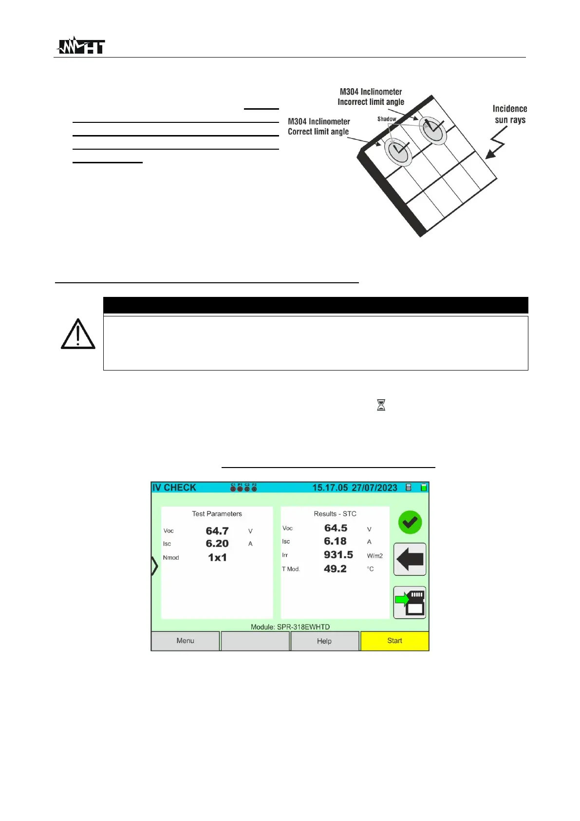 17. Press the START/STOP key (or Start on the display) to activate the test. If there are