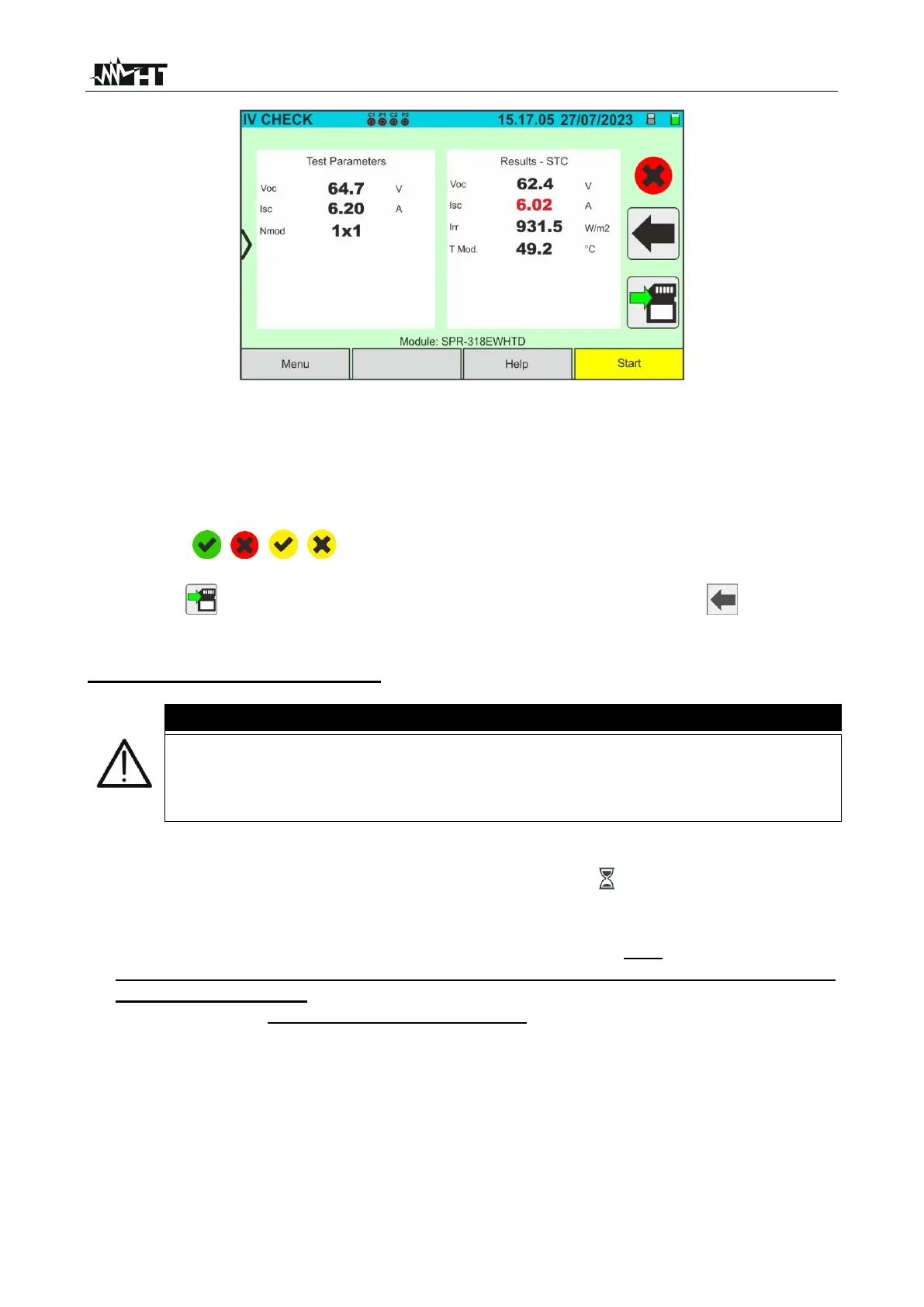 ➢ Icons , , , to indicate the outcome of the measurement (see § 6.5.3.1)