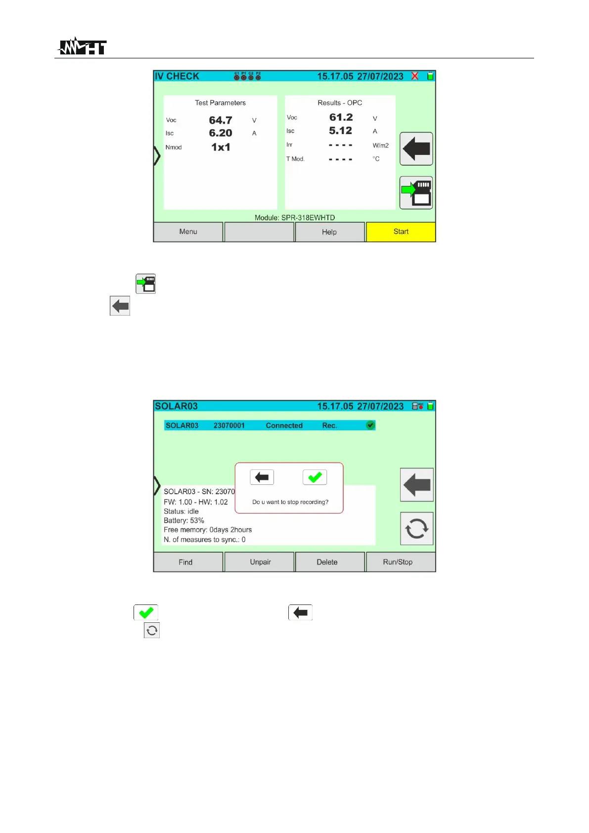 20. Tap on the icon to download (synchronise) the irradiance/temperature values