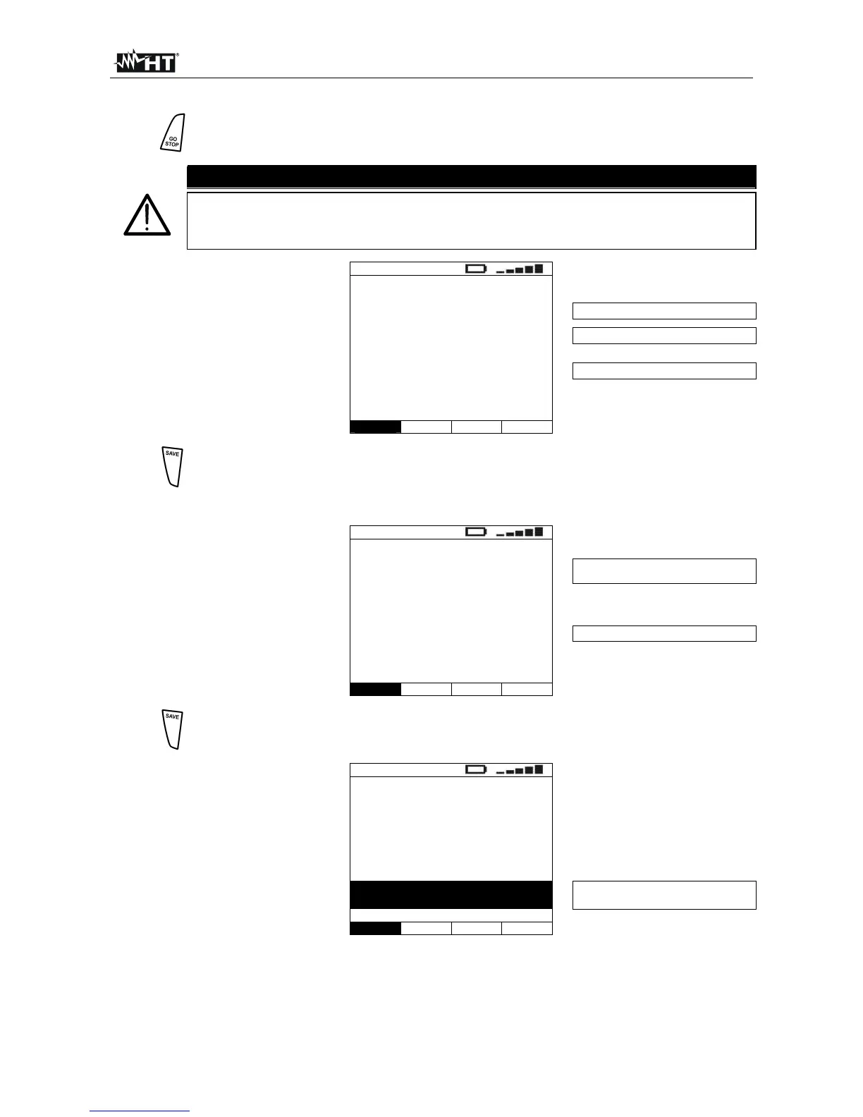 The results displayed can be saved by pressing the SAVE key twice or the