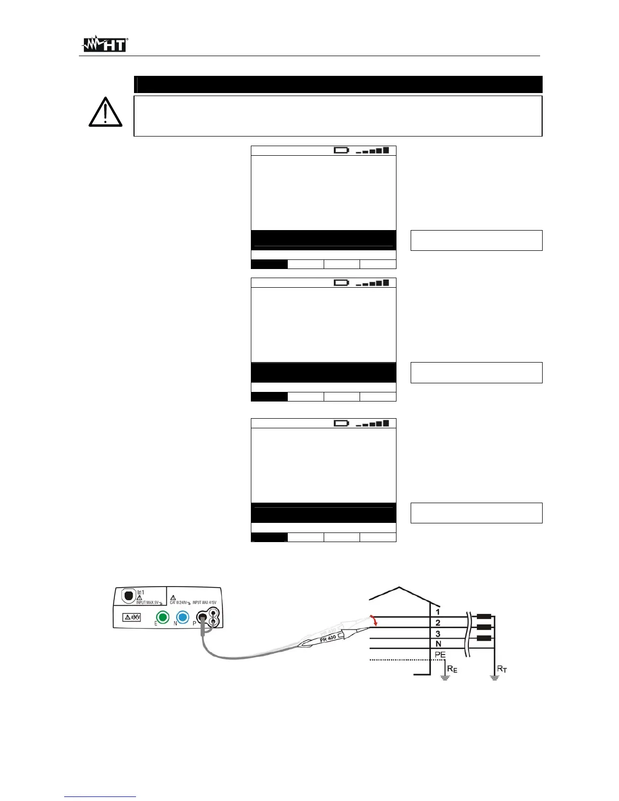 Fig. 26: Instrument connection for measuring the phase sequence with one lead, phase 2 connection