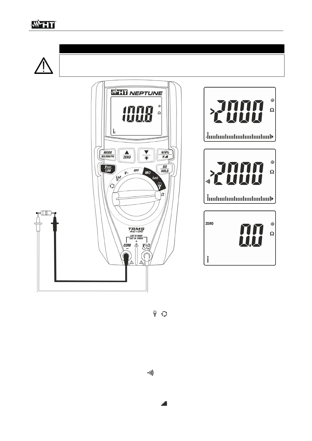 3. If necessary, short-circuit the measuring leads and press key /ZERO to zero the