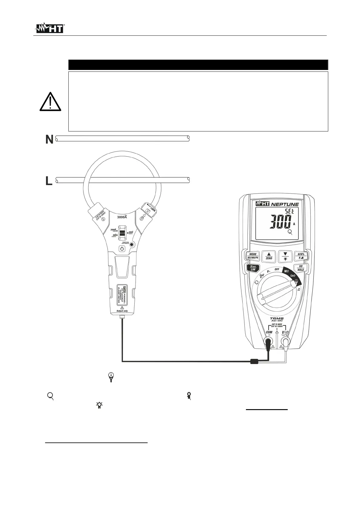 clamp, among the options: 30A, 300A, 3000A (AC current measurement with flexible