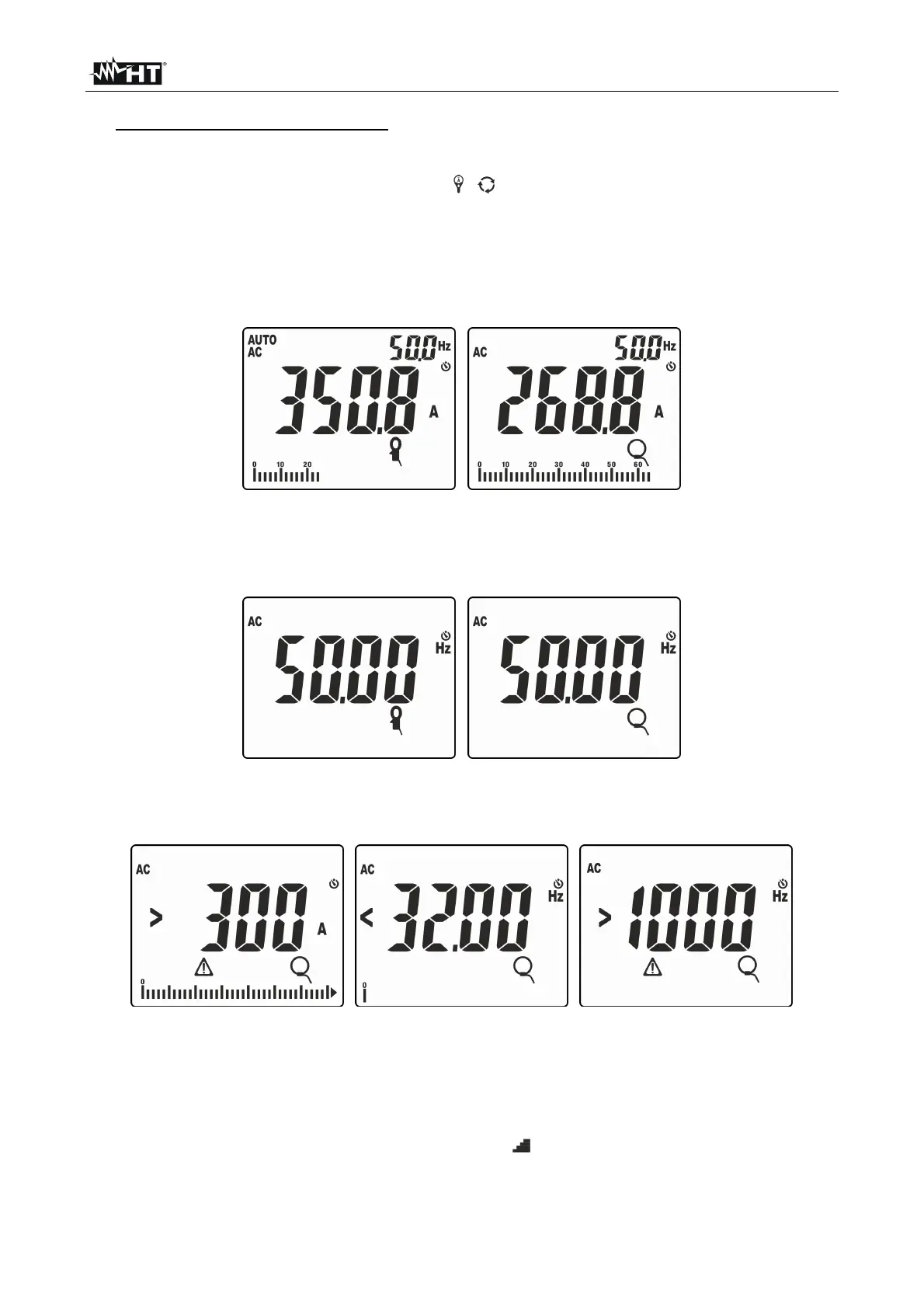 9. Press key MODE/MXMNPK to display the value of frequency of AC current with a high