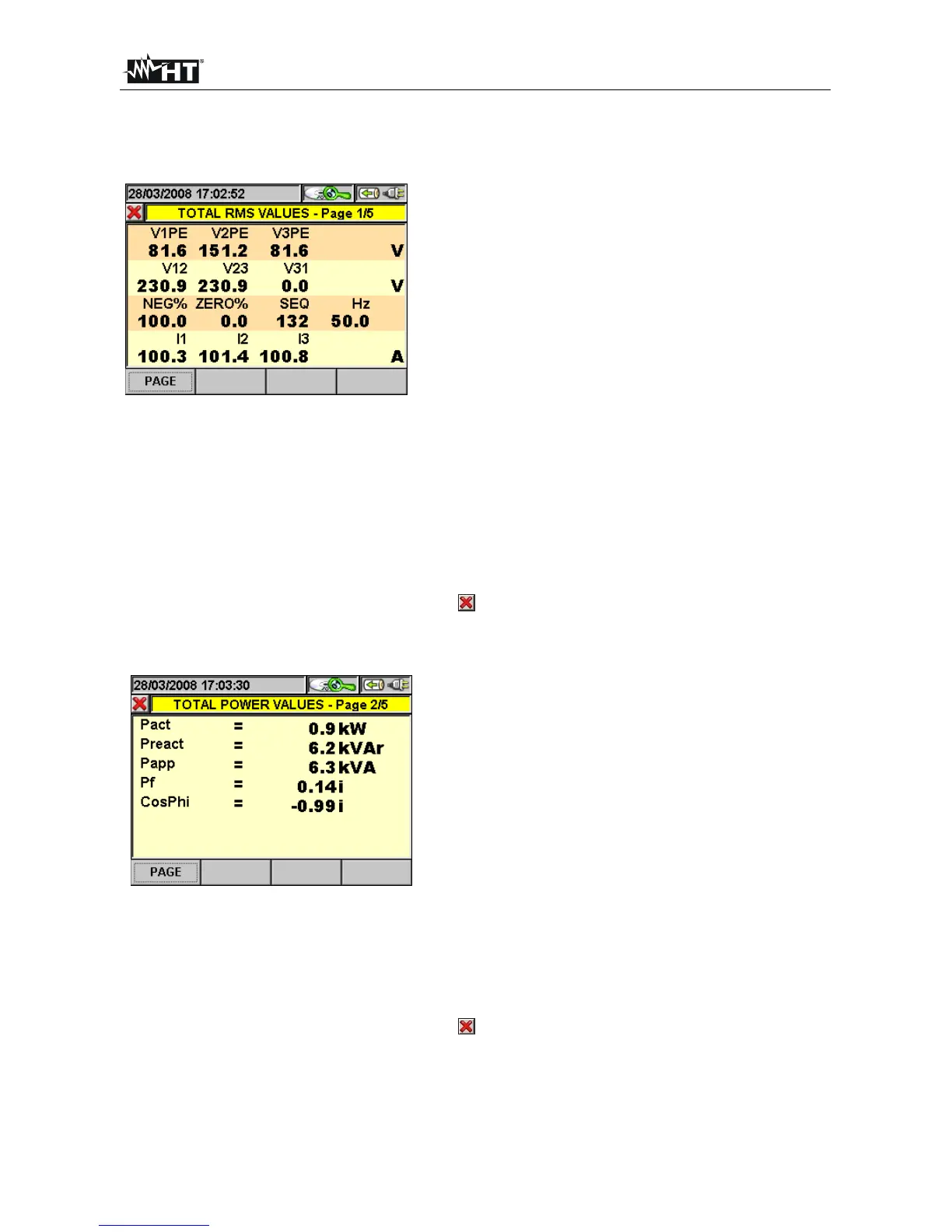 Fig. 185: Page 2/5 of numeric values for three-phase 3-wire system