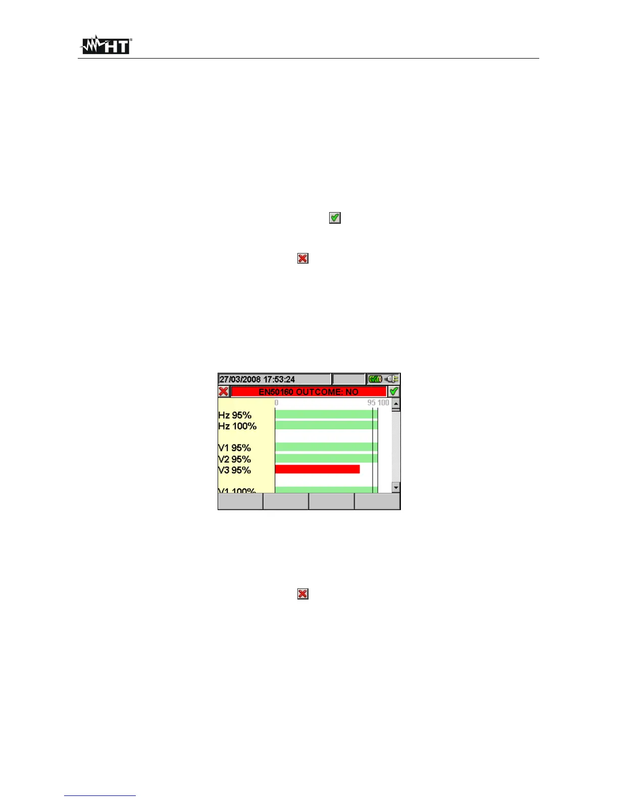 with standard EN50160, while the red bar indicates that the parameter does not