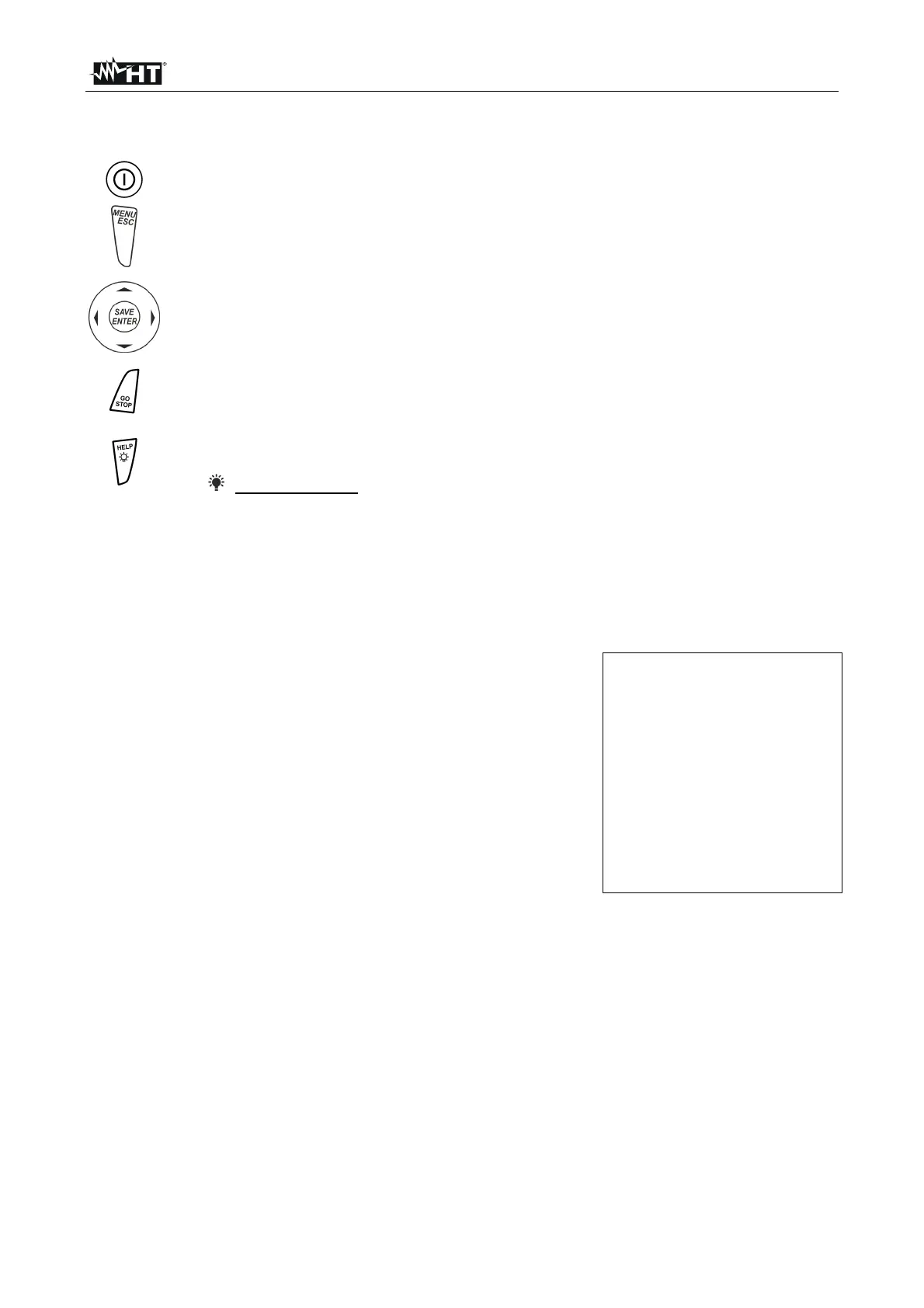 SAVE/ENTER key to save internal parameters and the results of measurements