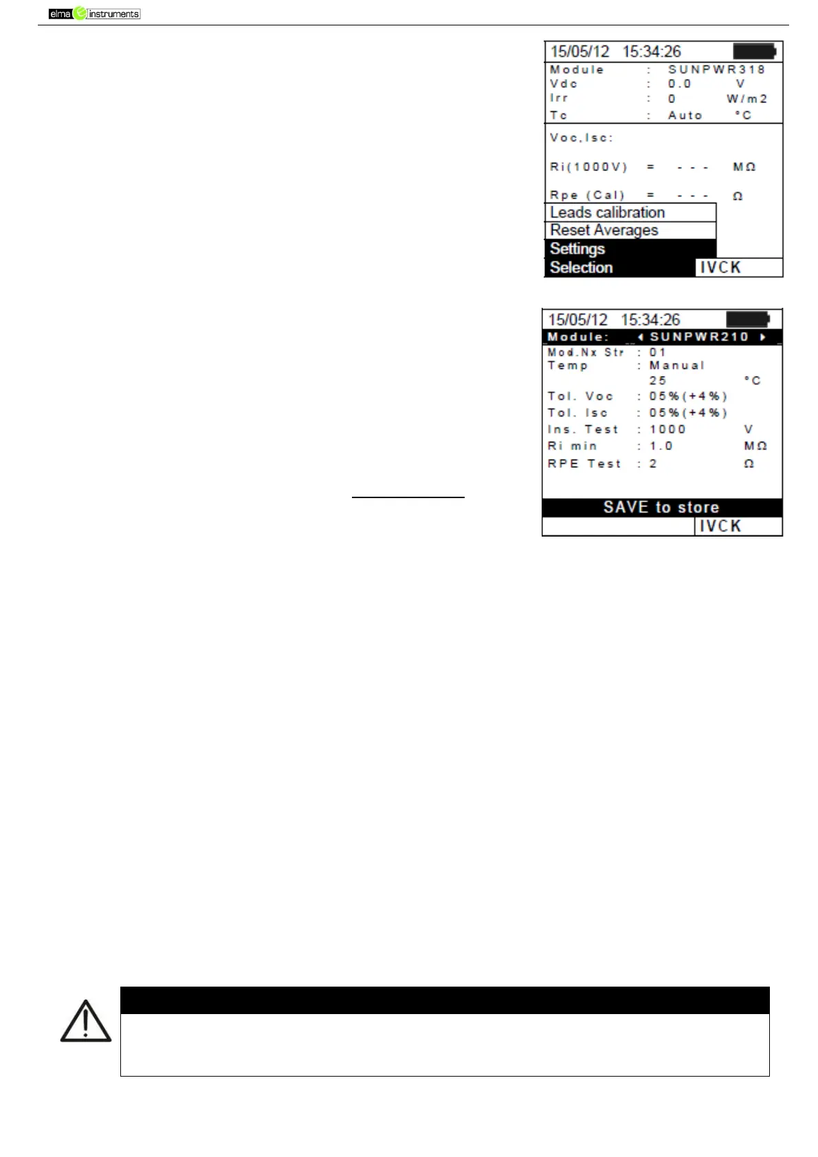 to his/her own requirements) for the measurement of Voc carried out by the instrument.