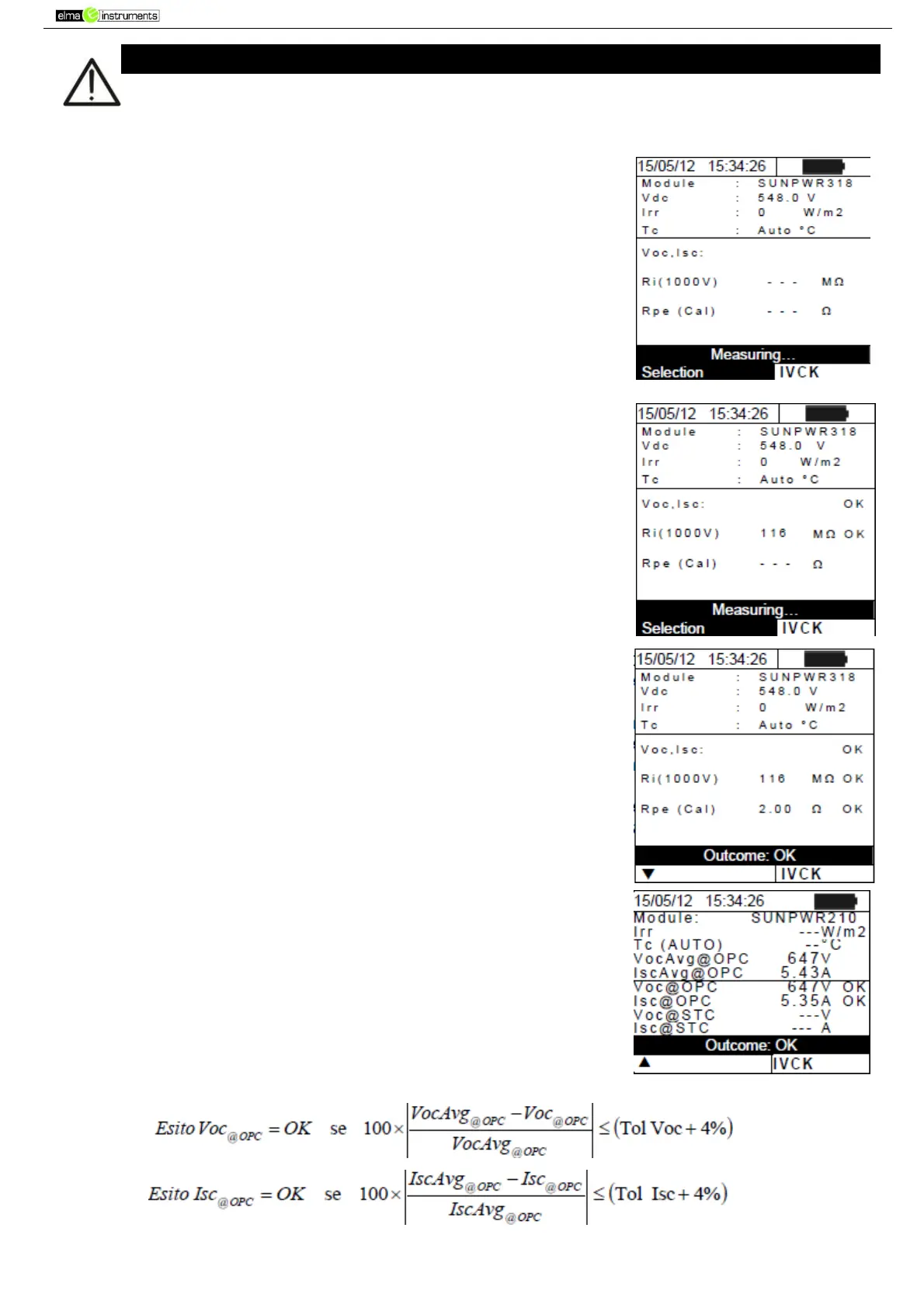 10. When Voc and Isc measurements are complete, the message