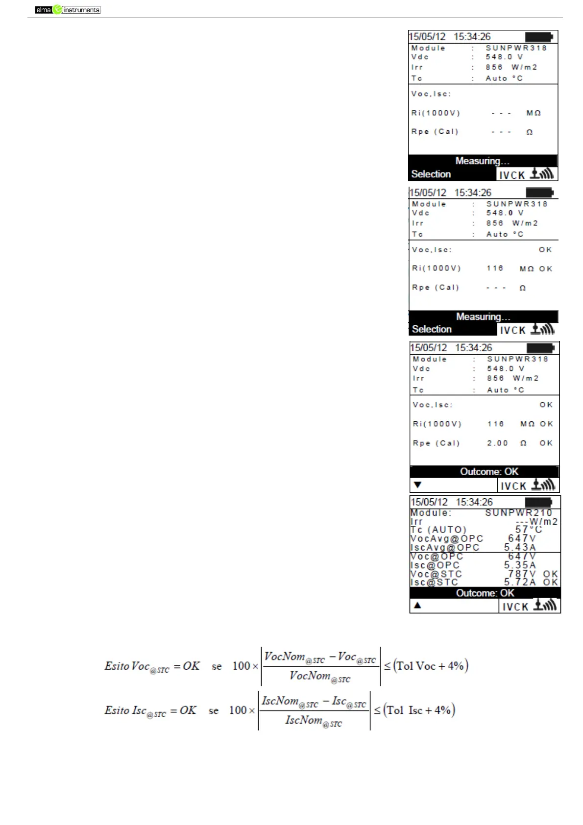16. When Voc and Isc measurements are complete, the message “OK”