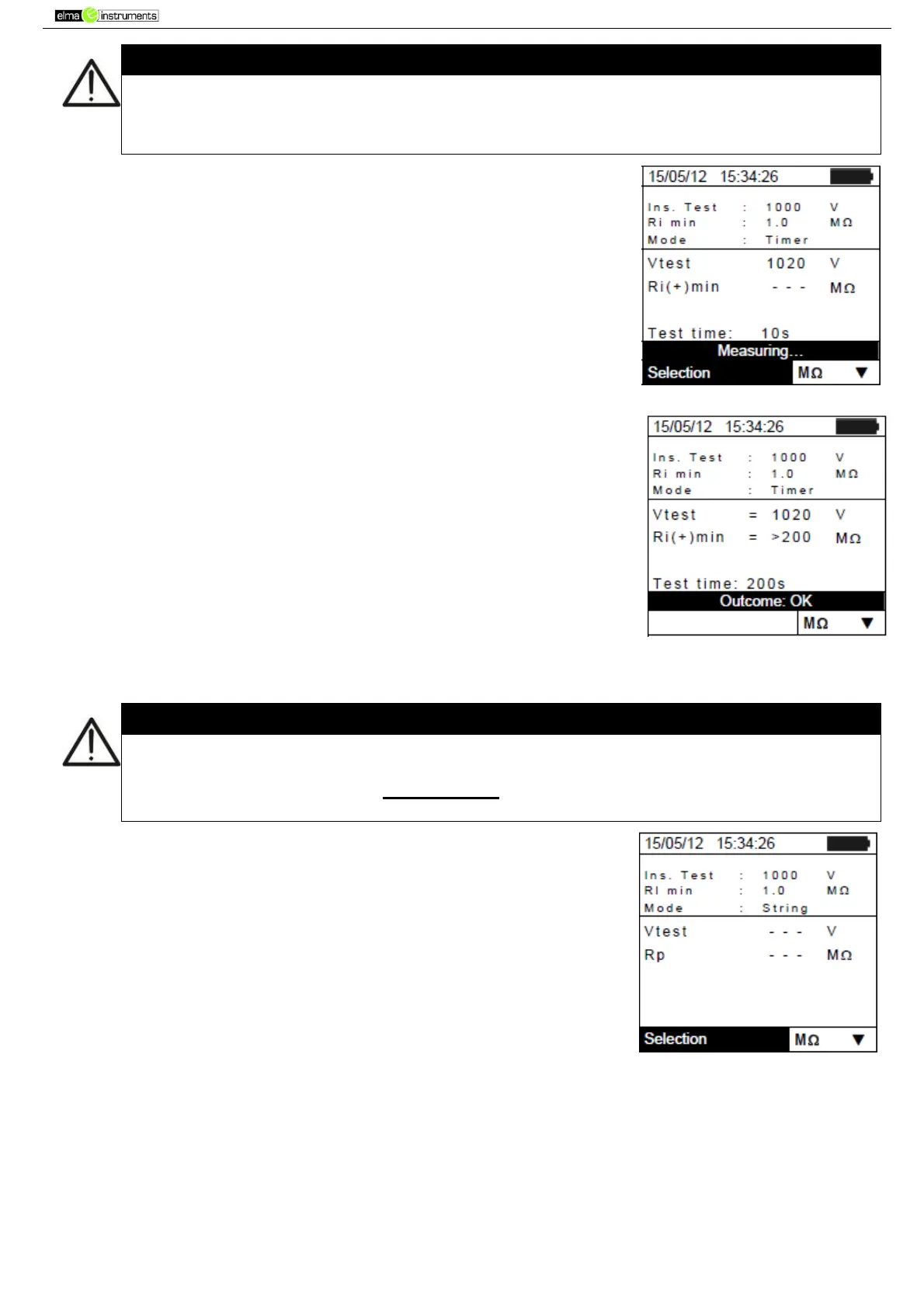 carrying out the measures of Insulation in "STRING" mode, always ensure that the