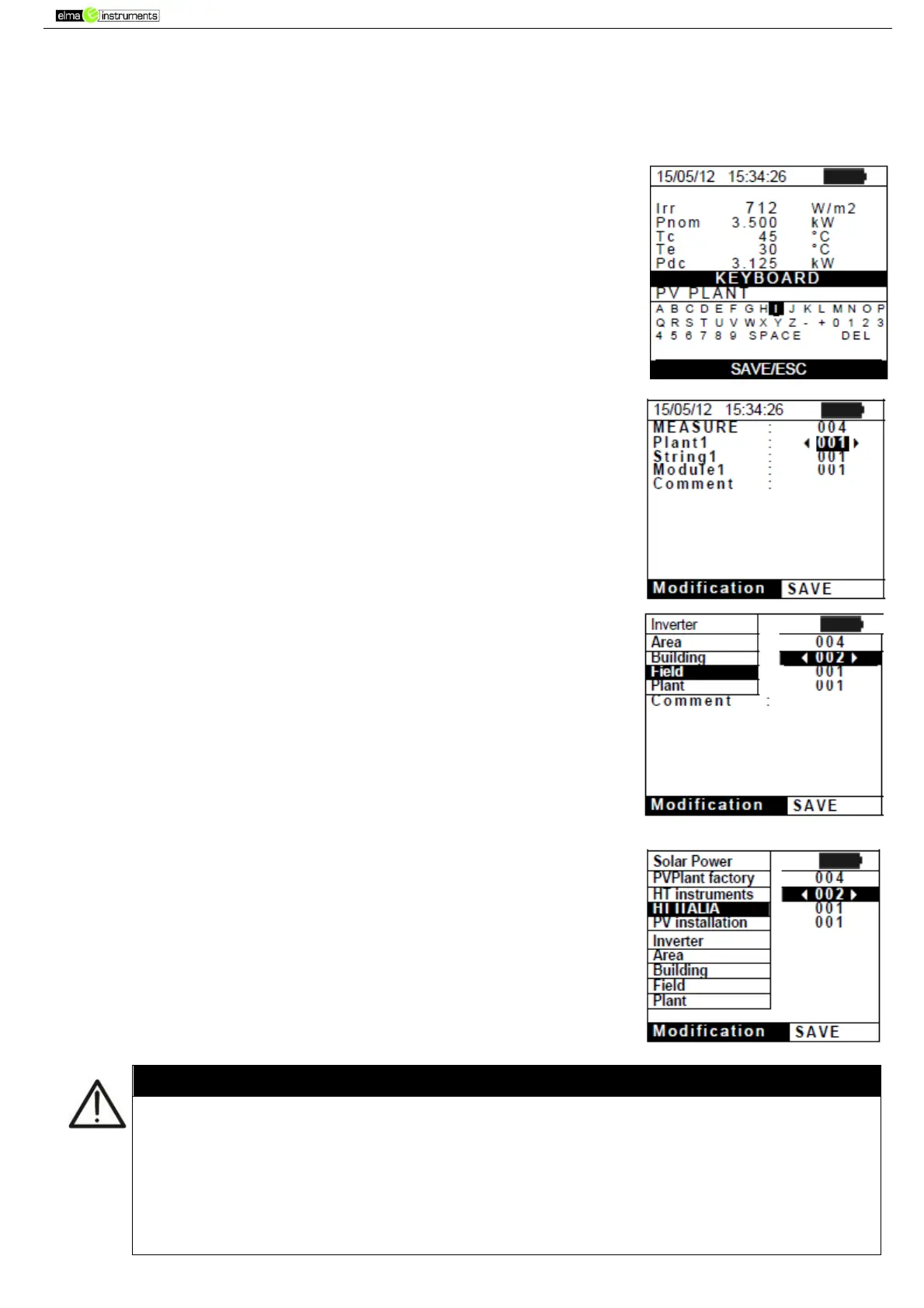 3. Press the SAVE key again to confirm data saving or ESC/MENU to