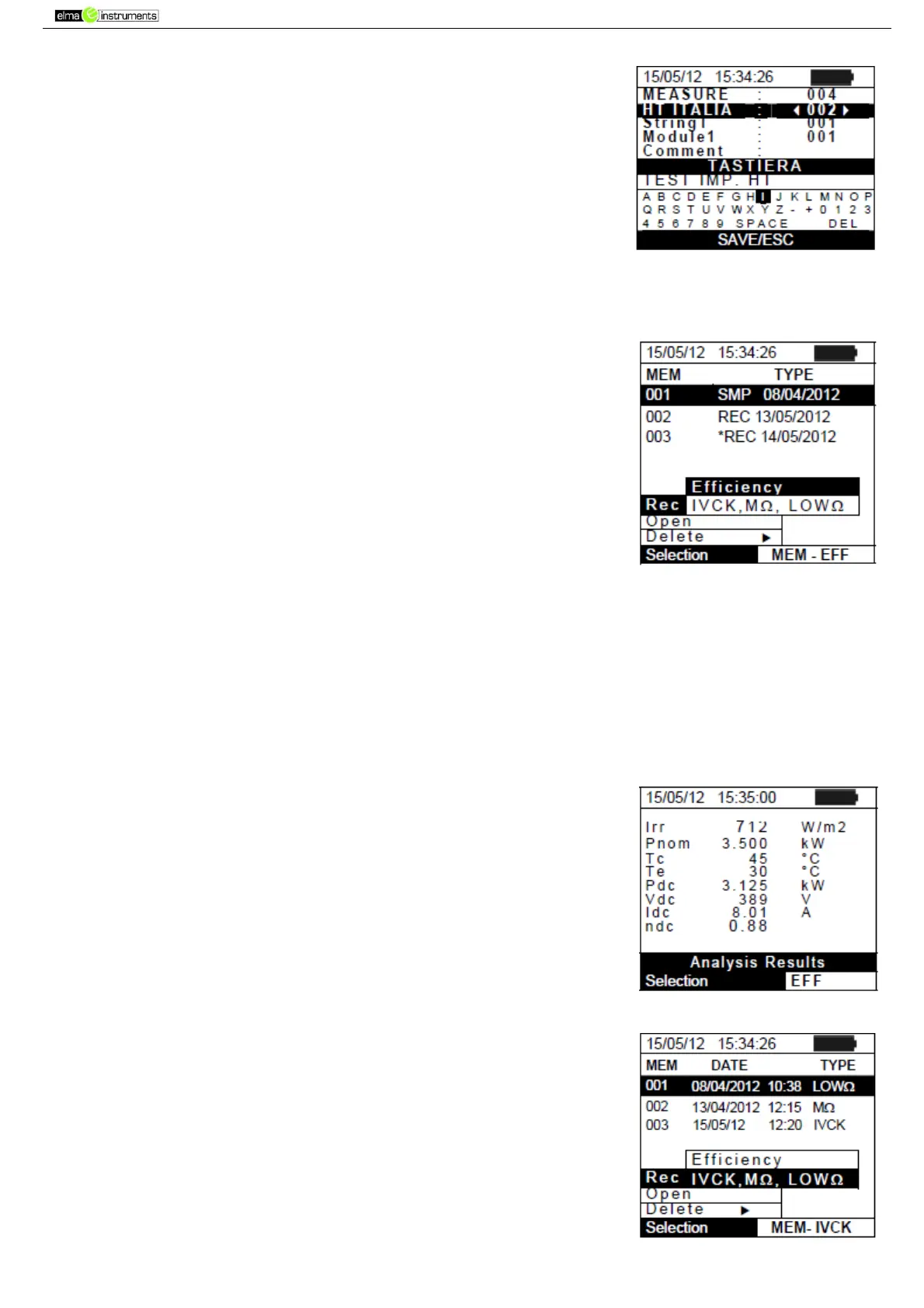7.3.2. Recalling on the display the results of IVCK, MΩ and LOWΩ measurements