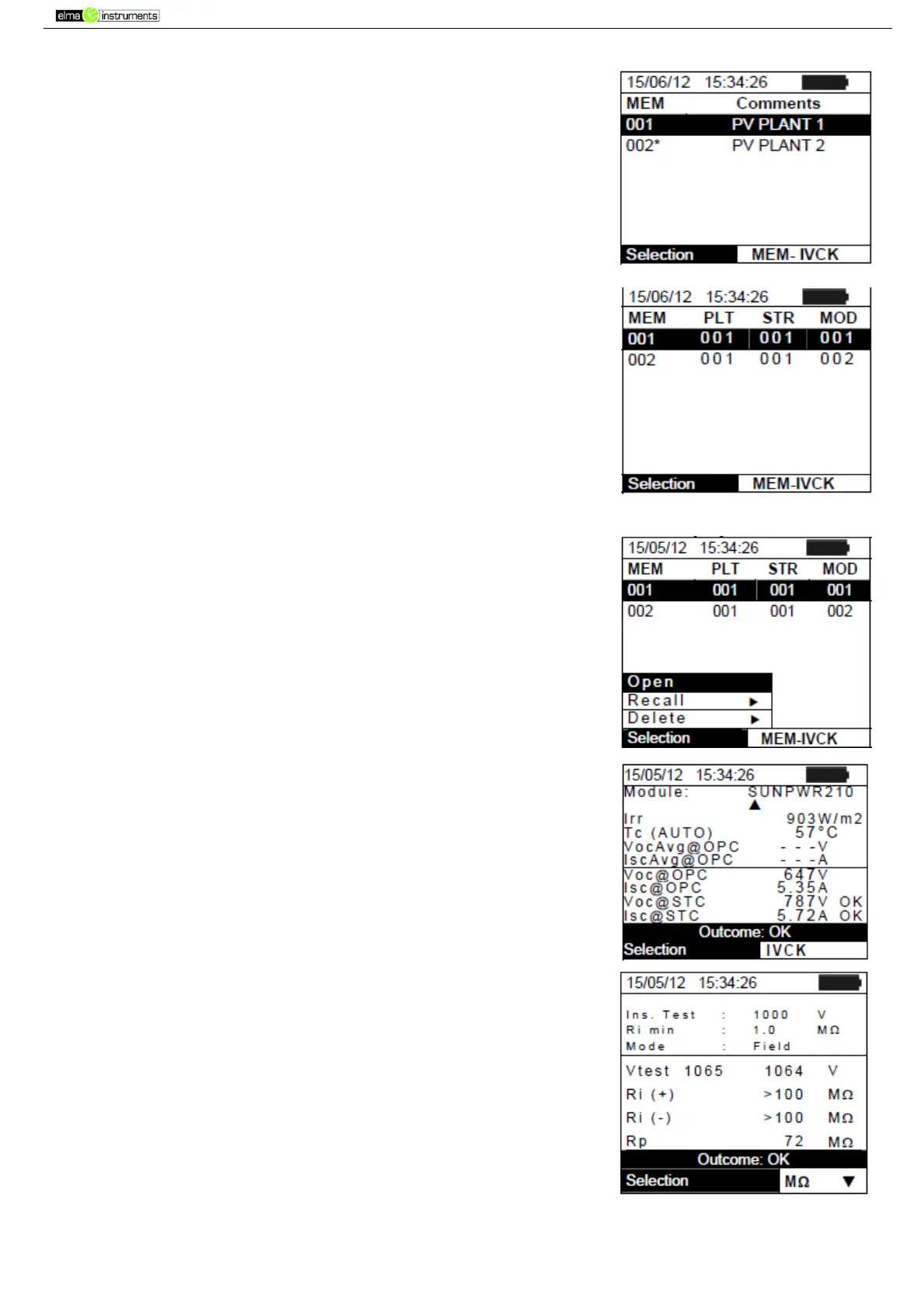 4. For MΩ test in FIELD mode there are the values of the following