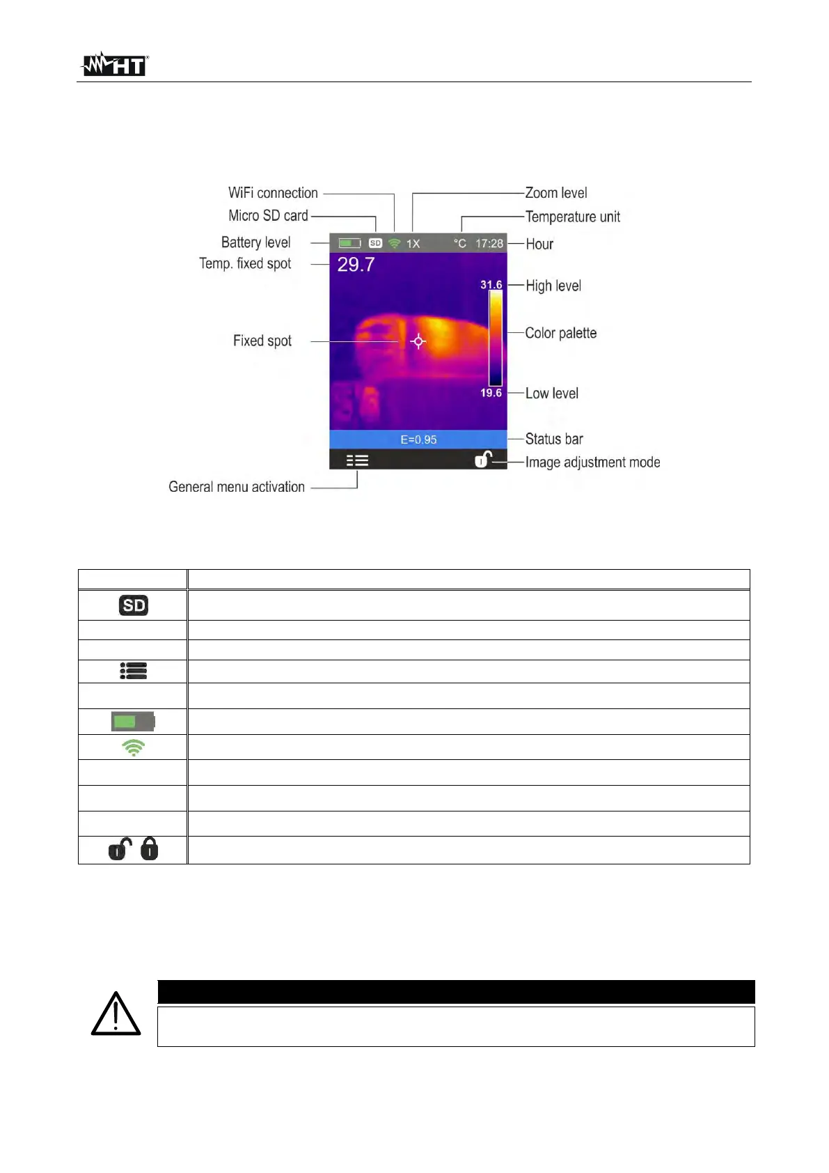 Indication of temperature levels of the IR image (see § 5.2.7)
