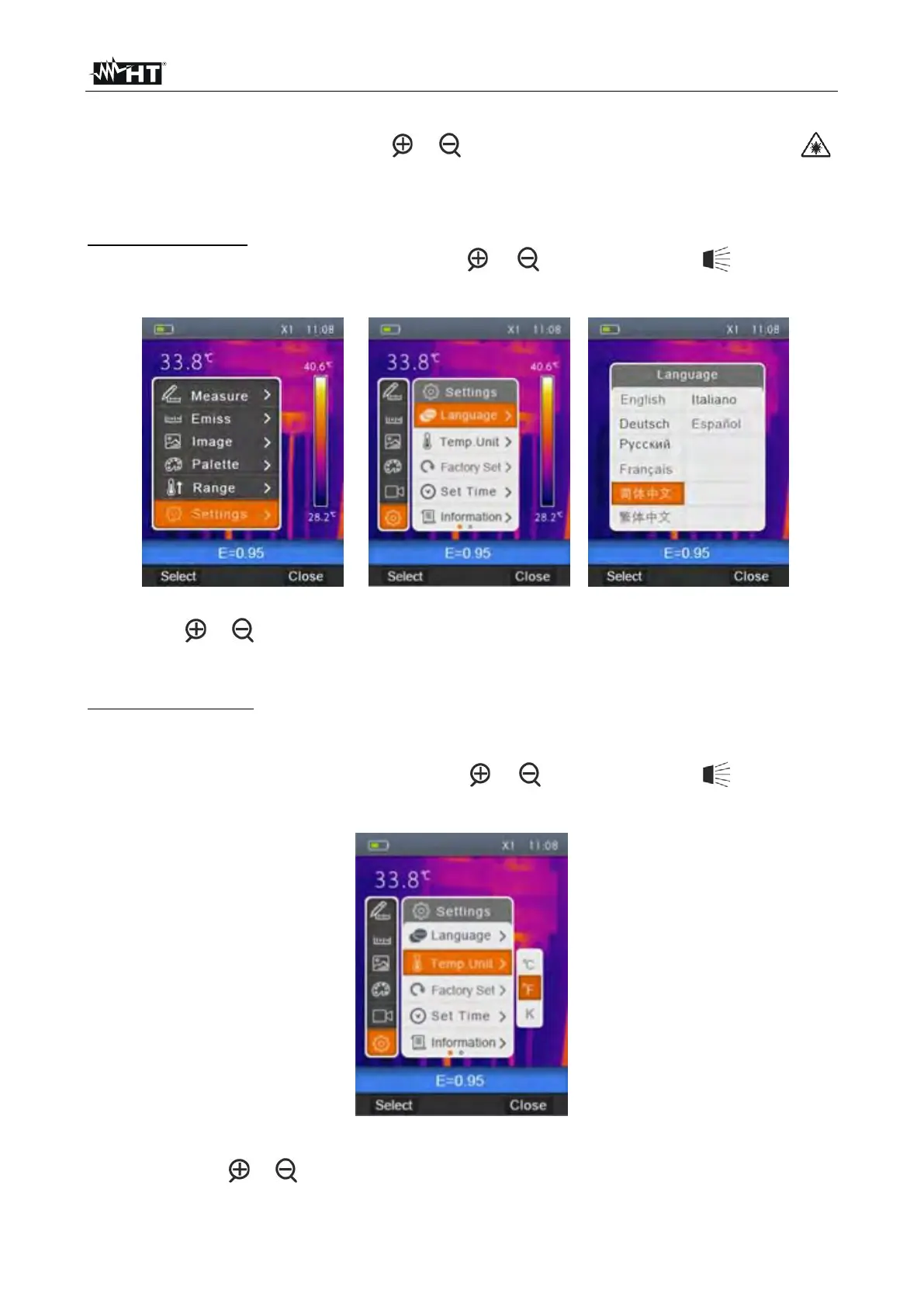1. Select the item “Temp Unit” with the keys or and press the key . The screen