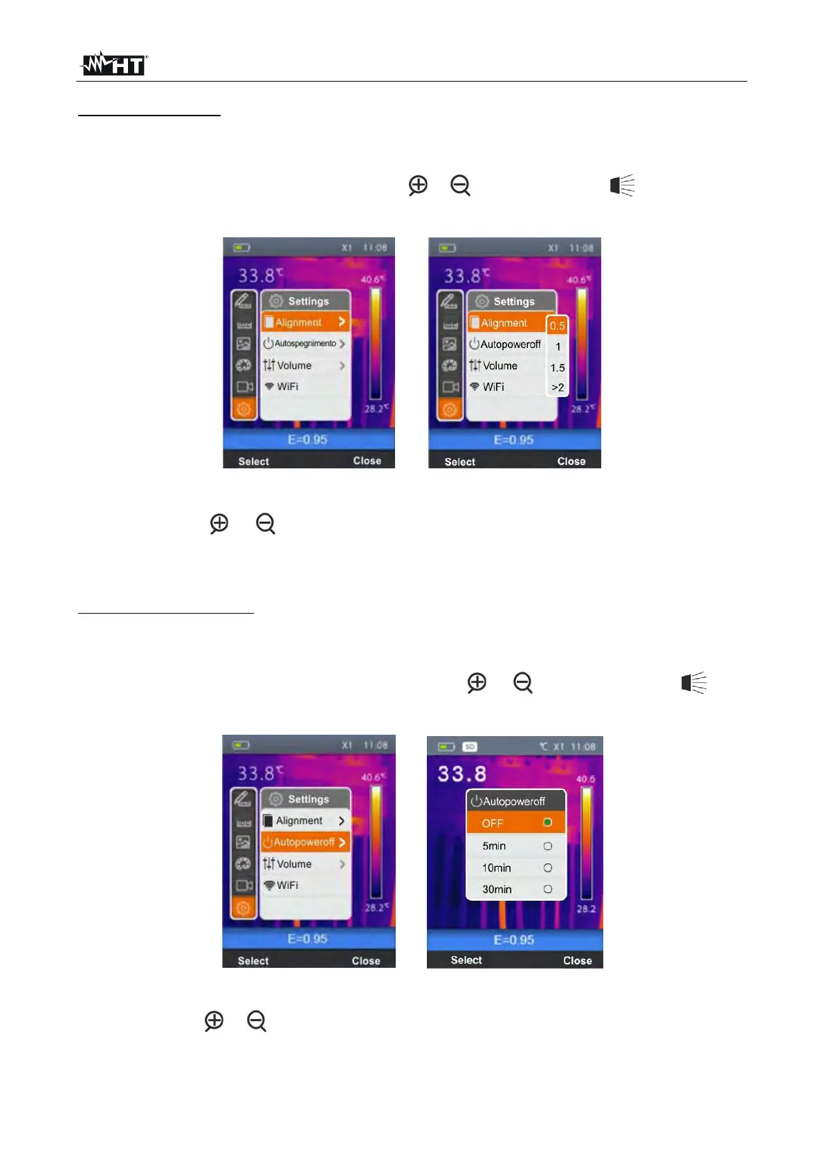 1. Select the item “Alignment” with the keys or and press the key . The screen of